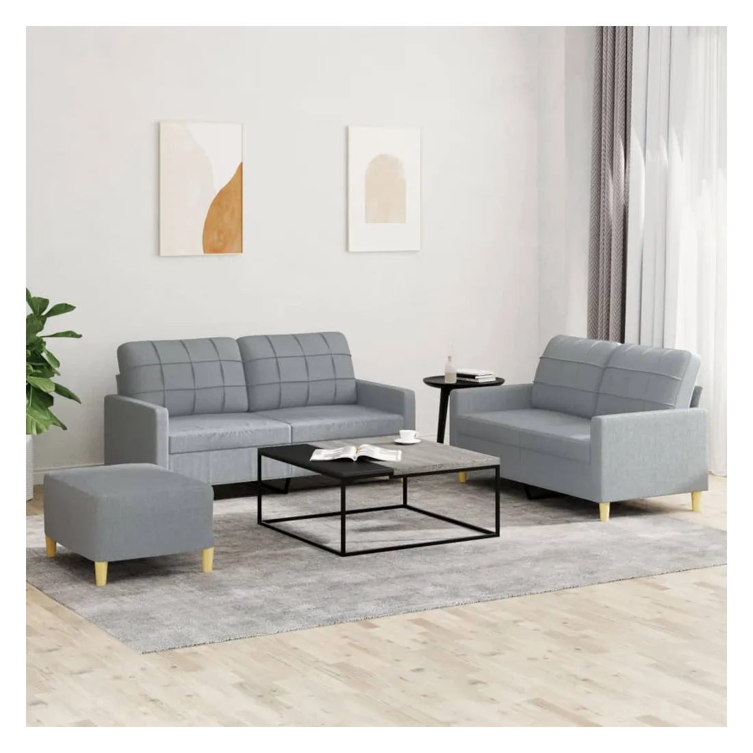 Cet ensemble de canapés est un excellent endroit pour discuter, lire, regarder la télévision ou simplement vous détendre. Il est destiné à être un point central de votre maison. Tissu durable : le tissu présente un aspect simple et épuré tout en restant respirant et durable.Structure robuste et stable : la structure en contreplaqué et en métal du canapé assure robustesse et stabilité.Expérience d'assise confortable : le canapé est très confortable avec le siège, les accoudoirs et les oreillers de dossier bien rembourrés.Pouf polyvalent : ce repose-pied convient pour reposer vos pieds lorsque vous êtes allongé dans un canapé, ou pour vous offrir un siège supplémentaire dans votre pièce. De plus, le design simple et la taille compacte le rendent idéal pour presque tous vos espaces de vie.