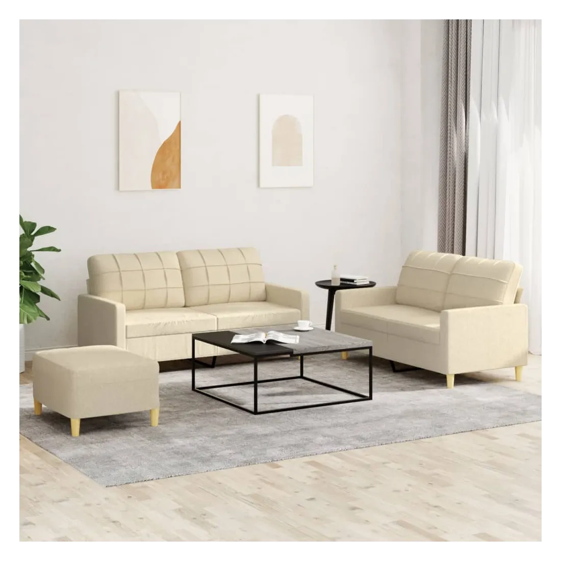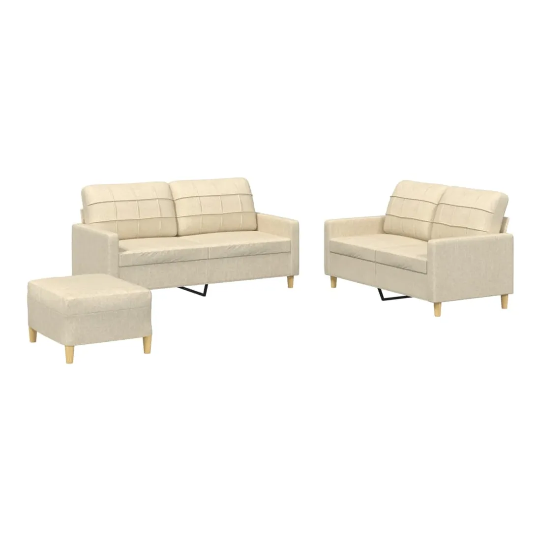 Cet ensemble de canapés est un excellent endroit pour discuter, lire, regarder la télévision ou simplement vous détendre. Il est destiné à être un point central de votre maison. Tissu durable : le tissu présente un aspect simple et épuré tout en restant respirant et durable.Structure robuste et stable : la structure en contreplaqué et en métal du canapé assure robustesse et stabilité.Expérience d'assise confortable : le canapé est très confortable avec le siège, les accoudoirs et les oreillers de dossier bien rembourrés.Pouf polyvalent : ce repose-pied convient pour reposer vos pieds lorsque vous êtes allongé dans un canapé, ou pour vous offrir un siège supplémentaire dans votre pièce. De plus, le design simple et la taille compacte le rendent idéal pour presque tous vos espaces de vie.