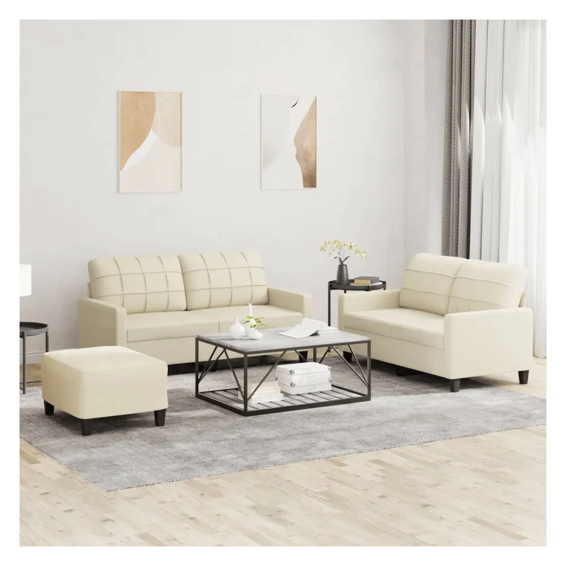 Cet ensemble de canapés est un excellent endroit pour discuter, lire, regarder la télévision ou simplement vous détendre. Il est destiné à être un point central de votre maison. Similicuir durable : le similicuir de qualité supérieure est un matériau très durable. Il est résistant aux taches, ce qui le rend facile à nettoyer avec un chiffon humide. La surface lisse donne également un aspect luxueux et la beauté du cuir véritable.Structure robuste et stable : la structure en contreplaqué et en métal du canapé assure robustesse et stabilité.Expérience d'assise confortable : le canapé est très confortable avec le siège, les accoudoirs et les oreillers de dossier bien rembourrés.Pouf polyvalent : ce repose-pied convient pour reposer vos pieds lorsque vous êtes allongé dans un canapé, ou pour vous offrir un siège supplémentaire dans votre pièce. De plus, le design simple et la taille compacte le rendent idéal pour presque tous vos espaces de vie.