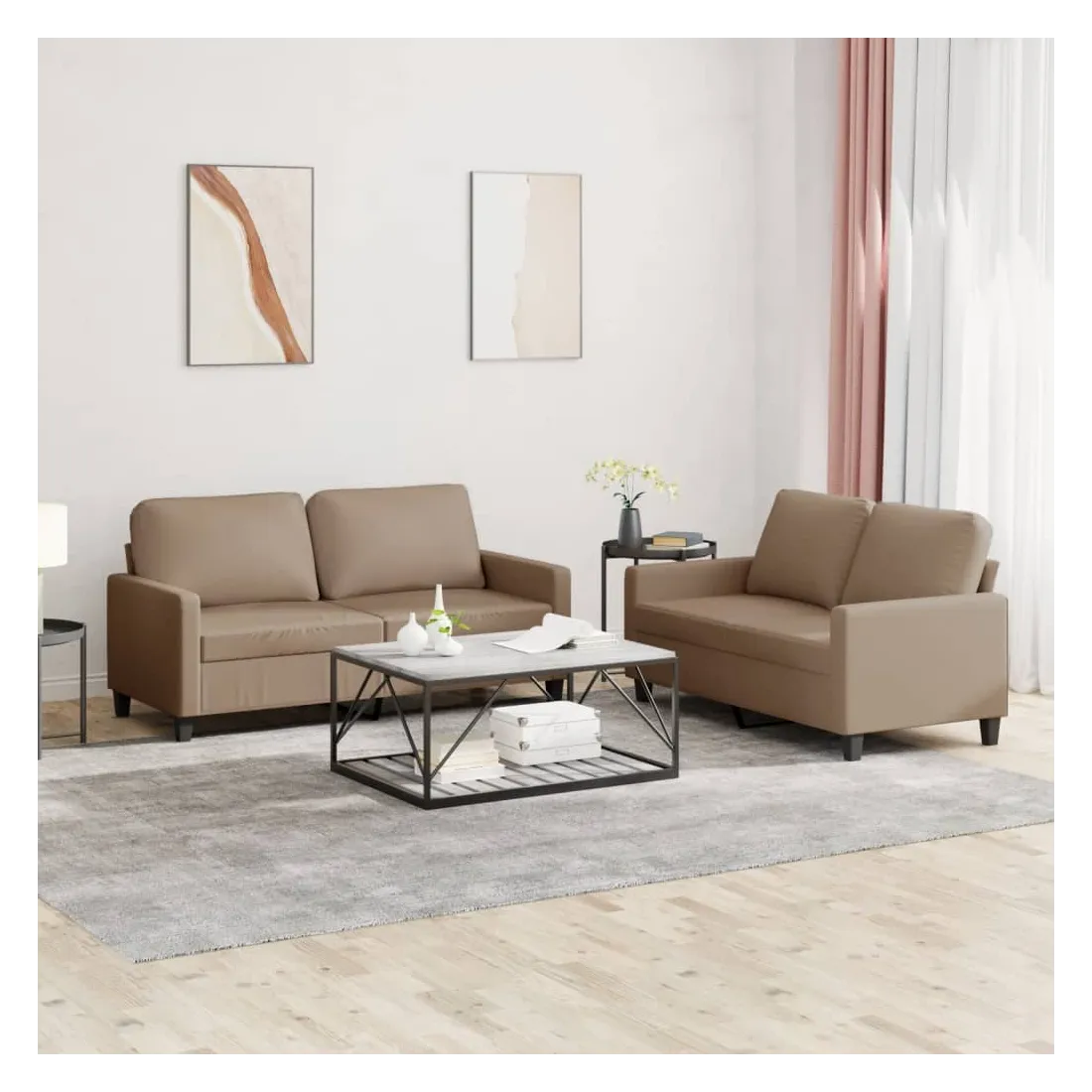 Cet ensemble de canapés est un excellent endroit pour discuter, lire, regarder la télévision ou simplement vous détendre. Il est destiné à être un point central de votre maison. Similicuir durable : le similicuir de qualité supérieure est un matériau très durable. Il est résistant aux taches, ce qui le rend facile à nettoyer avec un chiffon humide. La surface lisse donne également un aspect luxueux et la beauté du cuir véritable.Structure robuste et stable : la structure en contreplaqué et en métal du canapé assure robustesse et stabilité.Expérience d'assise confortable : le canapé est très confortable avec le siège, les accoudoirs et les oreillers de dossier bien rembourrés.Design accrocheur : doté d'un design simple mais moderne, ce siège de salon est destiné à attirer l'attention dans votre pièce.