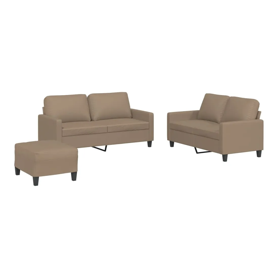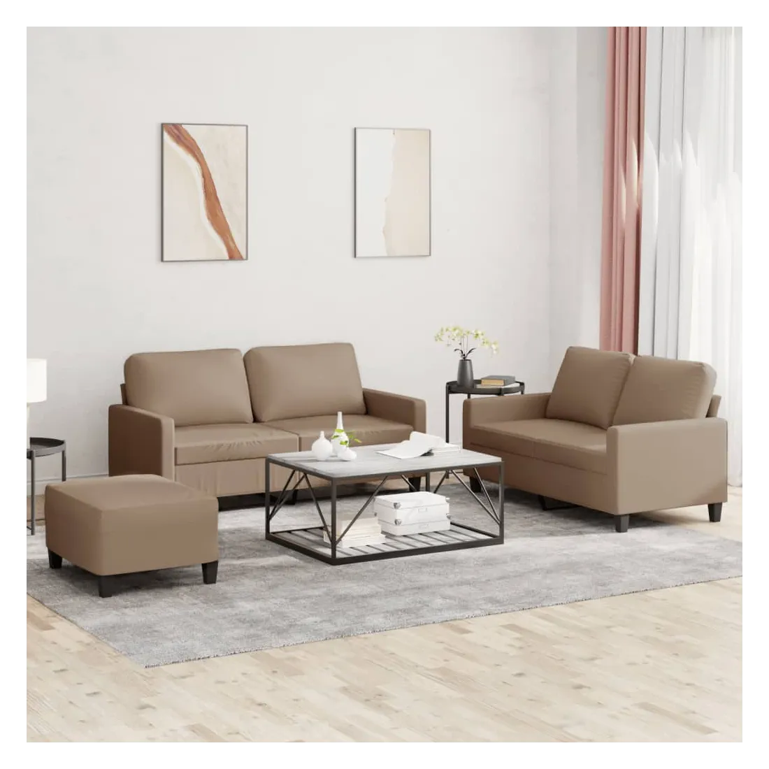 Cet ensemble de canapés est un excellent endroit pour discuter, lire, regarder la télévision ou simplement vous détendre. Il est destiné à être un point central de votre maison. Similicuir durable : le similicuir de qualité supérieure est un matériau très durable. Il est résistant aux taches, ce qui le rend facile à nettoyer avec un chiffon humide. La surface lisse donne également un aspect luxueux et la beauté du cuir véritable.Structure robuste et stable : la structure en contreplaqué et en métal du canapé assure robustesse et stabilité.Expérience d'assise confortable : le canapé est très confortable avec le siège, les accoudoirs et les oreillers de dossier bien rembourrés.Pouf polyvalent : ce repose-pied convient pour reposer vos pieds lorsque vous êtes allongé dans un canapé, ou pour vous offrir un siège supplémentaire dans votre pièce. De plus, le design simple et la taille compacte le rendent idéal pour presque tous vos espaces de vie.