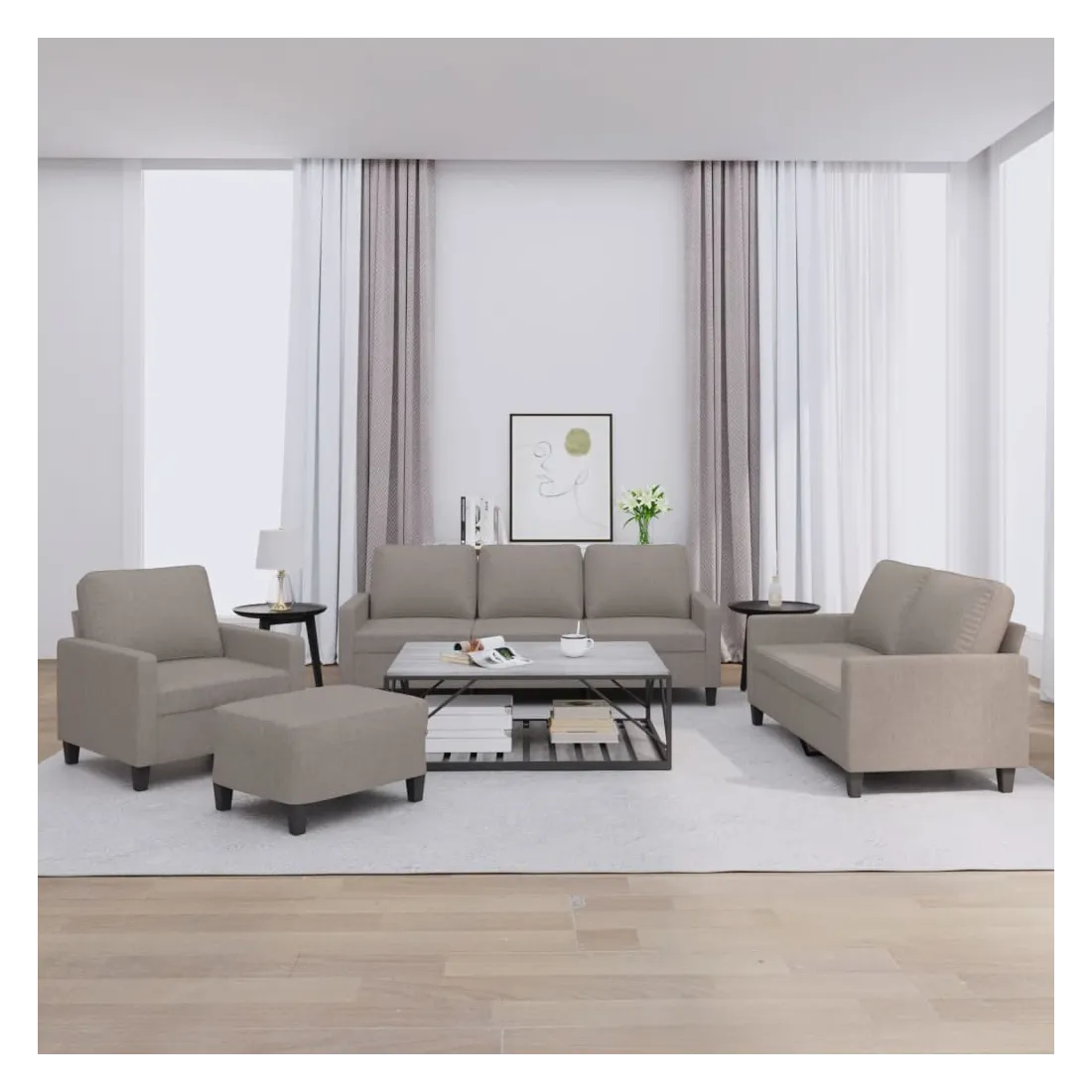 Cet ensemble de canapés est un excellent endroit pour discuter, lire, regarder la télévision ou simplement vous détendre. Il est destiné à être un point central de votre maison. Tissu durable : le tissu présente un aspect simple et épuré tout en restant respirant et durable.Structure robuste et stable : la structure en contreplaqué et en métal du canapé assure robustesse et stabilité.Expérience d'assise confortable : le canapé est très confortable avec le siège, les accoudoirs et les oreillers de dossier bien rembourrés.Pouf polyvalent : ce repose-pied convient pour reposer vos pieds lorsque vous êtes allongé dans un canapé, ou pour vous offrir un siège supplémentaire dans votre pièce. De plus, le design simple et la taille compacte le rendent idéal pour presque tous vos espaces de vie.