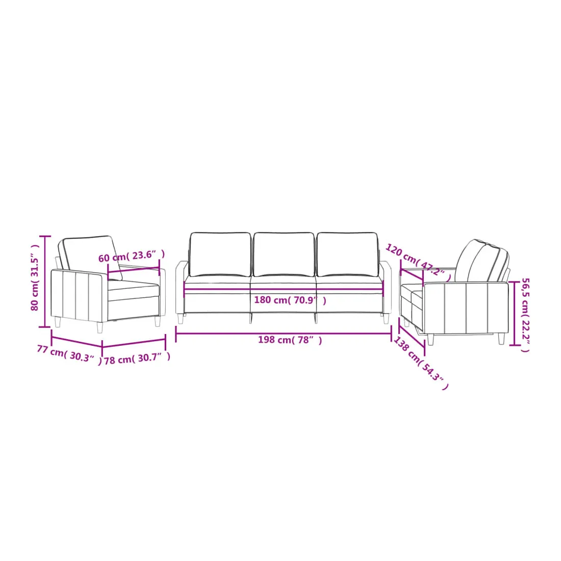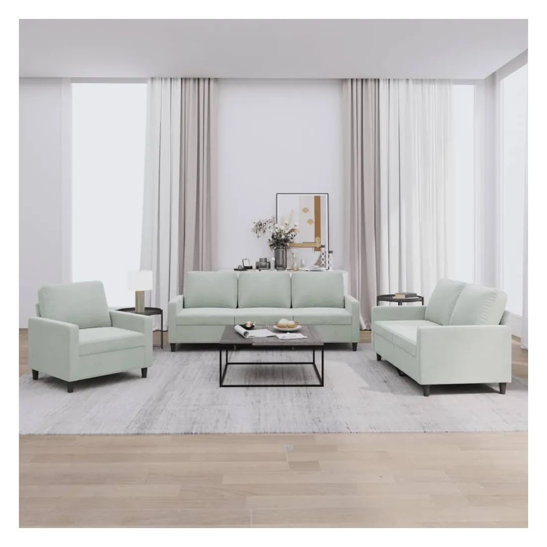 Cet ensemble de canapés est un excellent endroit pour discuter, lire, regarder la télévision ou simplement vous détendre. Il est destiné à être un point central de votre maison. Velours doux : le velours est un tissu doux et confortable, agréable au toucher.Structure robuste et stable : la structure en contreplaqué et en métal du canapé assure robustesse et stabilité.Expérience d'assise confortable : le canapé est très confortable grâce au siège et aux accoudoirs épais et rembourrés.