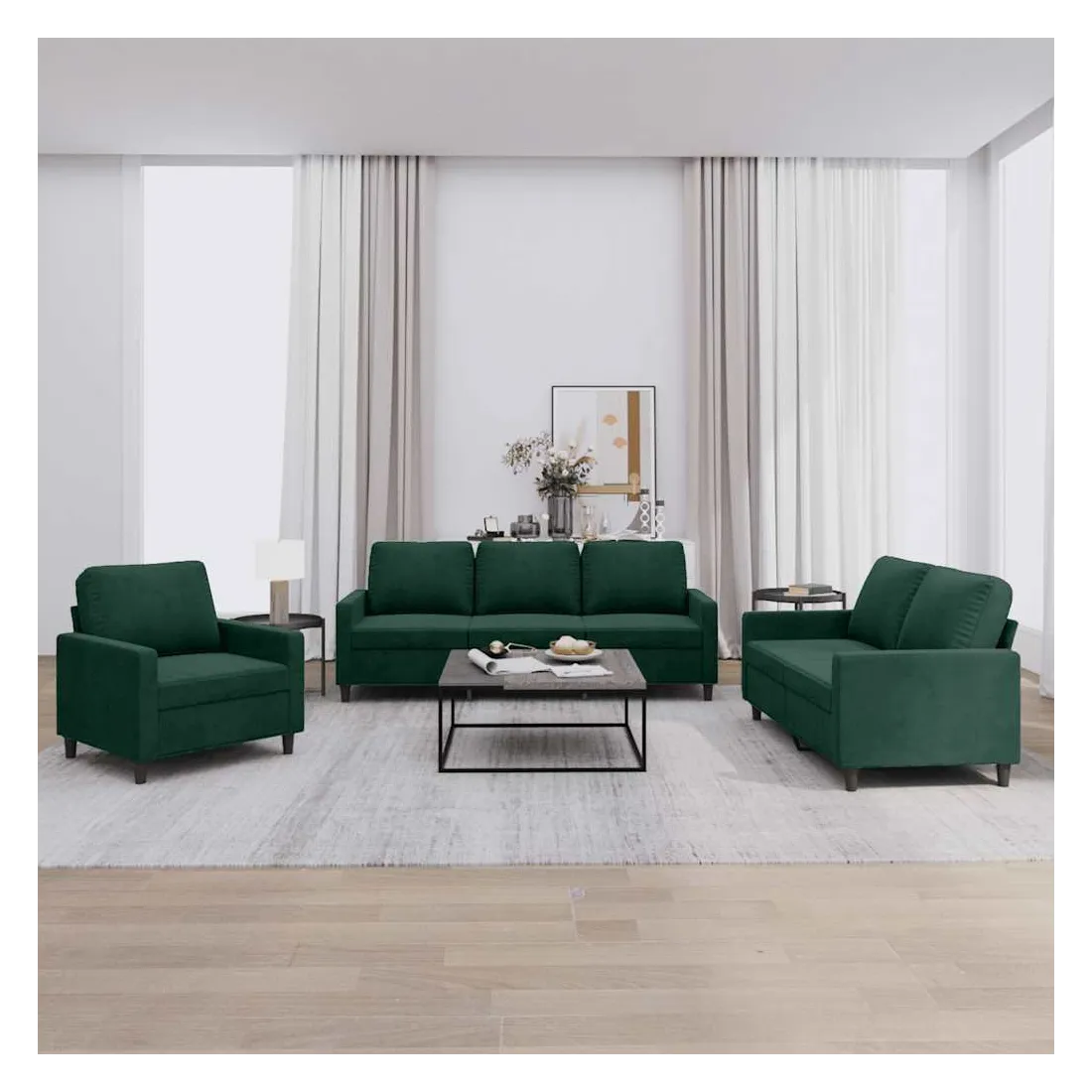 Cet ensemble de canapés est un excellent endroit pour discuter, lire, regarder la télévision ou simplement vous détendre. Il est destiné à être un point central de votre maison. Velours doux : le velours est un tissu doux et confortable, agréable au toucher.Structure robuste et stable : la structure en contreplaqué et en métal du canapé assure robustesse et stabilité.Expérience d'assise confortable : le canapé est très confortable grâce au siège et aux accoudoirs épais et rembourrés.
