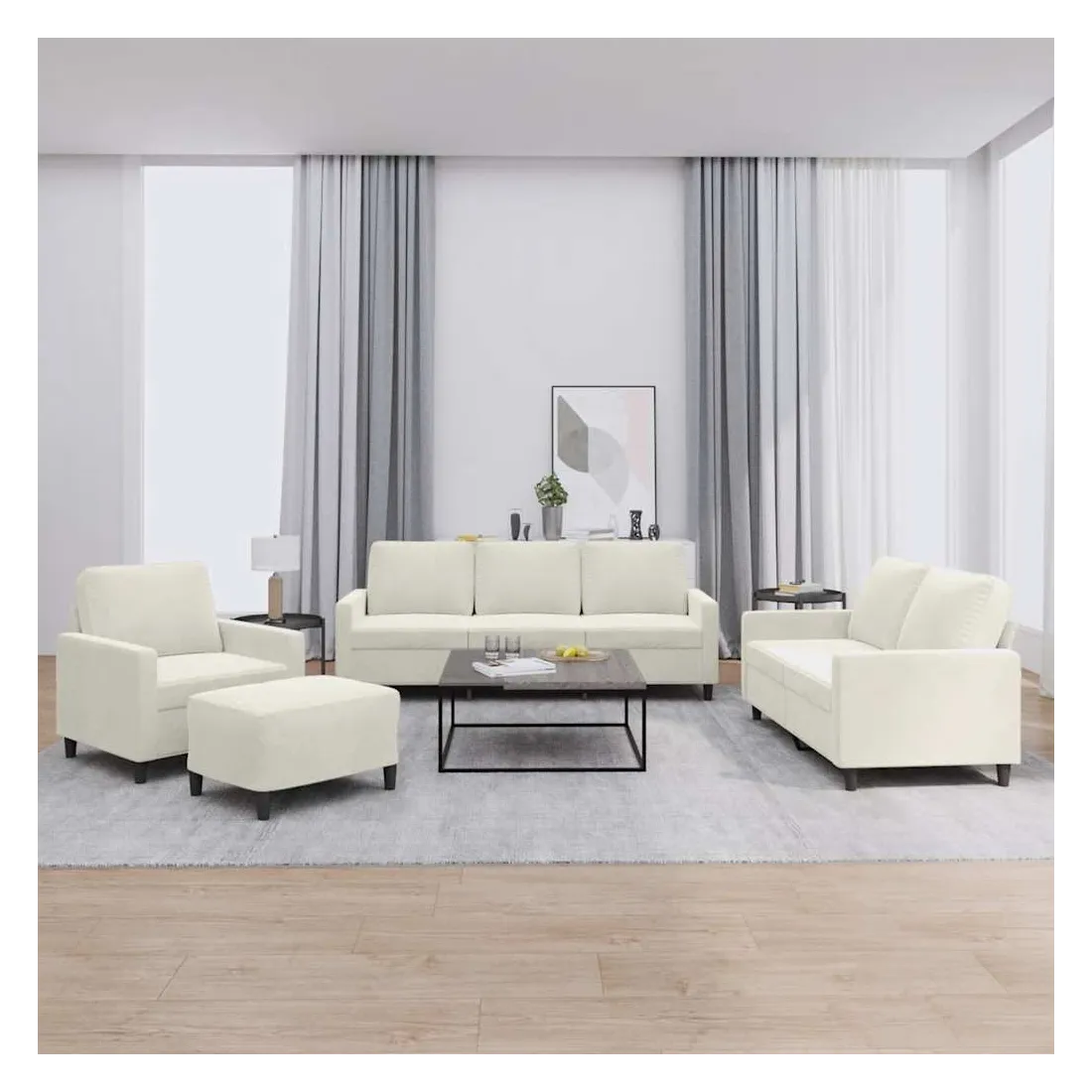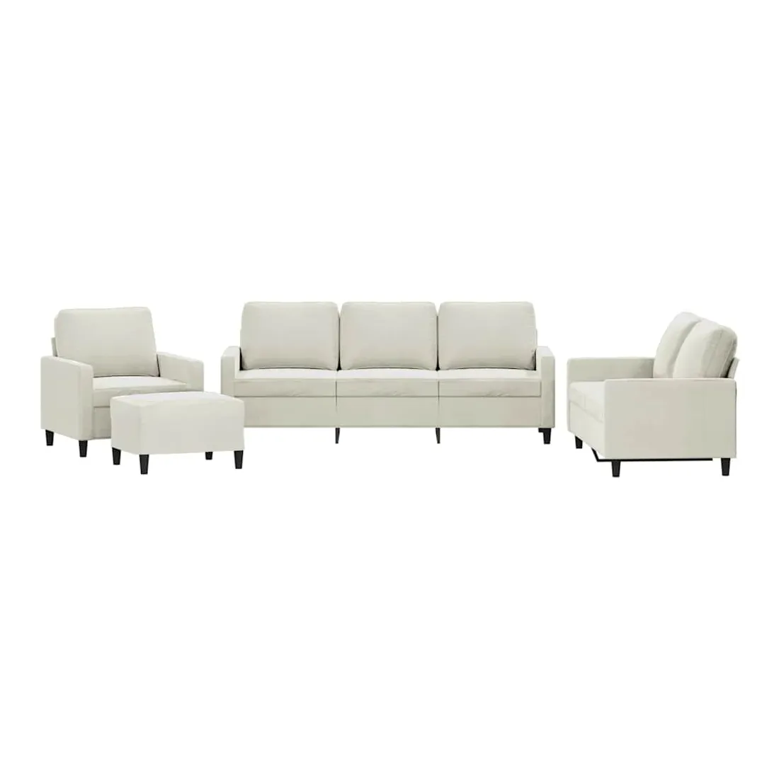 vidaXLCet ensemble de canapés est un excellent endroit pour discuter, lire, regarder la télévision ou simplement vous détendre. Il est destiné à être un point central de votre maison. Velours doux : le velours est un tissu doux et confortable, agréable au toucher.Structure robuste et stable : la structure en contreplaqué et en métal du canapé assure robustesse et stabilité.Expérience d'assise confortable : le canapé est très confortable grâce au siège et aux accoudoirs épais et rembourrés.Pouf polyvalent : ce repose-pied convient pour reposer vos pieds lorsque vous êtes allongé dans un canapé, ou pour vous offrir un siège supplémentaire dans votre pièce. De plus, le design simple et la taille compacte le rendent idéal pour presque tous vos espaces de vie.