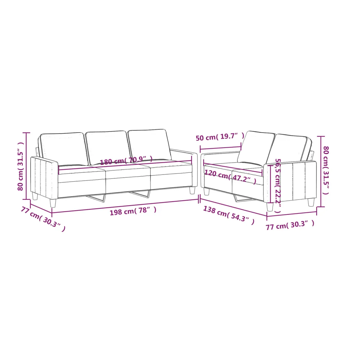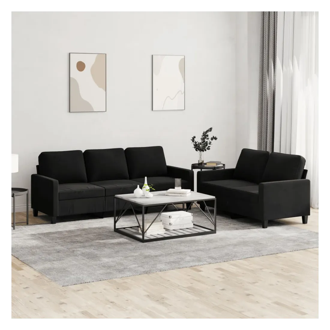 Cet ensemble de canapés est un excellent endroit pour discuter, lire, regarder la télévision ou simplement vous détendre. Il est destiné à être un point central de votre maison. Velours doux : le velours est un tissu doux et confortable, agréable au toucher.Structure robuste et stable : la structure en contreplaqué et en métal du canapé assure robustesse et stabilité.Expérience d'assise confortable : le canapé est très confortable grâce au siège et aux accoudoirs épais et rembourrés.