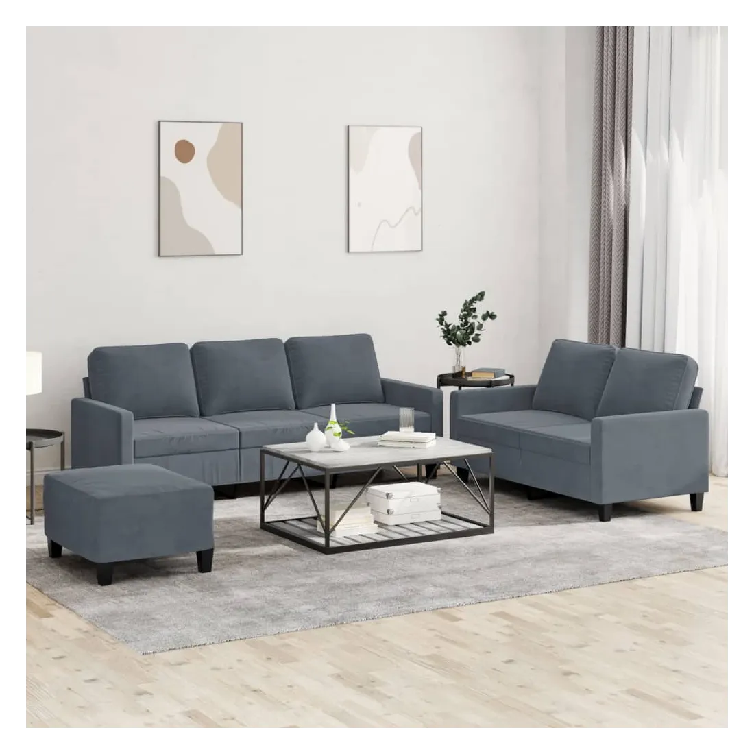 Cet ensemble de canapés est un excellent endroit pour discuter, lire, regarder la télévision ou simplement vous détendre. Il est destiné à être un point central de votre maison. Velours doux : le velours est un tissu doux et confortable, agréable au toucher.Structure robuste et stable : la structure en contreplaqué et en métal du canapé assure robustesse et stabilité.Expérience d'assise confortable : le canapé est très confortable grâce au siège et aux accoudoirs épais et rembourrés.Pouf polyvalent : ce repose-pied convient pour reposer vos pieds lorsque vous êtes allongé dans un canapé, ou pour vous offrir un siège supplémentaire dans votre pièce. De plus, le design simple et la taille compacte le rendent idéal pour presque tous vos espaces de vie.