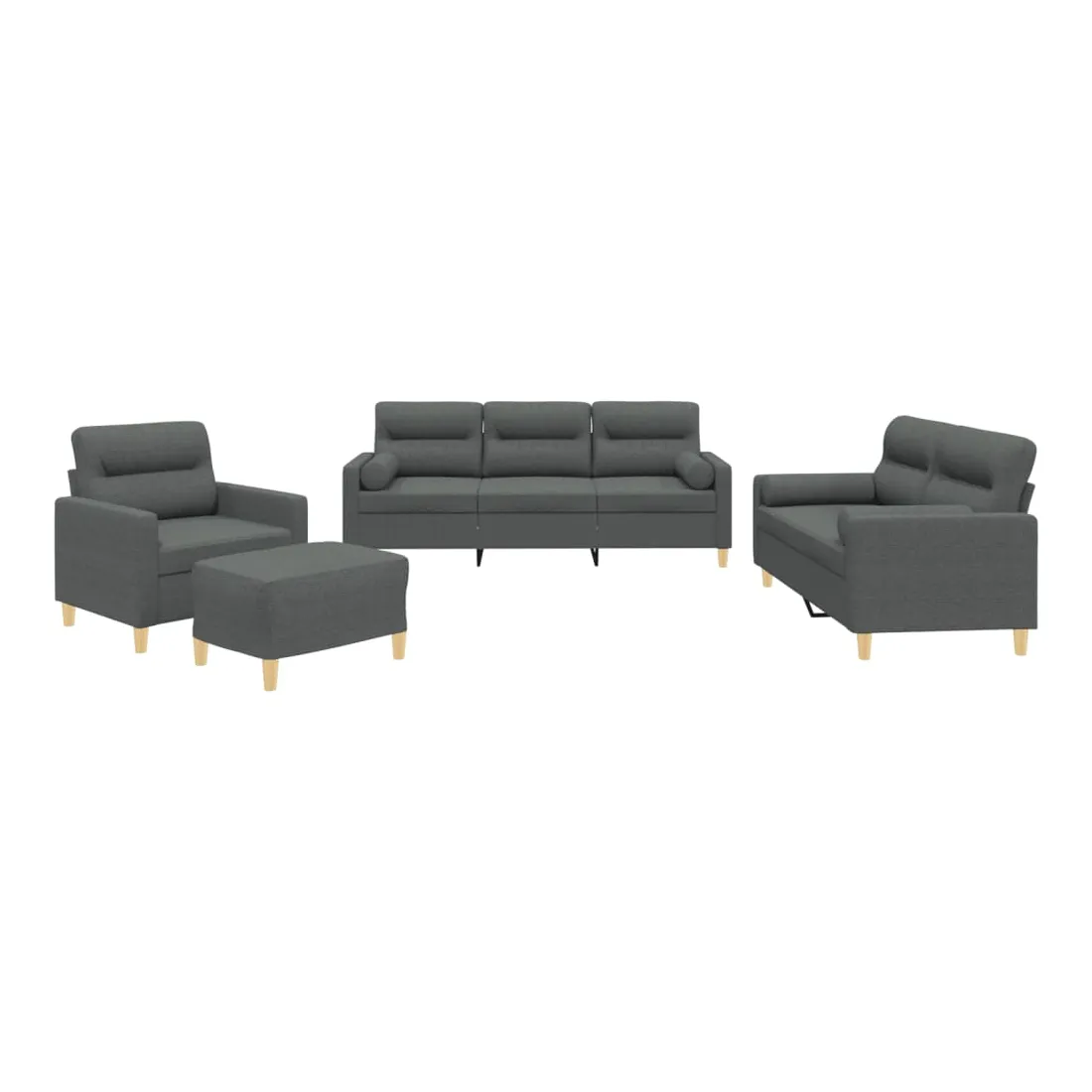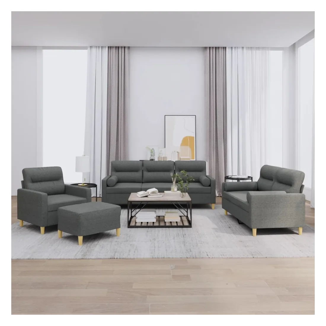 Cet ensemble de canapés est un excellent endroit pour discuter, lire, regarder la télévision ou simplement vous détendre. Il est destiné à être un point central de votre maison. Tissu durable : le tissu présente un aspect simple et épuré tout en restant respirant et durable.Structure robuste et stable : la structure en contreplaqué et en métal du canapé assure robustesse et stabilité.Expérience d'assise confortable : le canapé est très confortable avec le siège, les accoudoirs et les oreillers de dossier bien rembourrés.Oreillers cylindriques pratiques : ces oreillers cylindriques non seulement embellissent votre décor, mais ils peuvent également apporter un confort supplémentaire lorsque vous êtes assis ou allongé.Pouf polyvalent : ce repose-pied convient pour reposer vos pieds lorsque vous êtes allongé dans un canapé, ou pour vous offrir un siège supplémentaire dans votre pièce. De plus, le design simple et la taille compacte le rendent idéal pour presque tous vos espaces de vie.