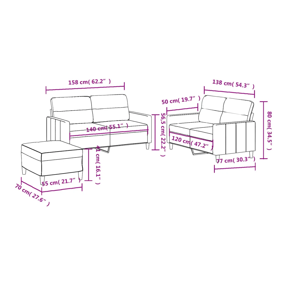 Cet ensemble de canapés est un excellent endroit pour discuter, lire, regarder la télévision ou simplement vous détendre. Il est destiné à être un point central de votre maison. Tissu durable : le tissu présente un aspect simple et épuré tout en restant respirant et durable.Structure robuste et stable : la structure en contreplaqué et en métal du canapé assure robustesse et stabilité.Expérience d'assise confortable : le canapé est très confortable grâce au siège et aux accoudoirs épais et rembourrés.Pouf polyvalent : ce repose-pied convient pour reposer vos pieds lorsque vous êtes allongé dans un canapé, ou pour vous offrir un siège supplémentaire dans votre pièce. De plus, le design simple et la taille compacte le rendent idéal pour presque tous vos espaces de vie.