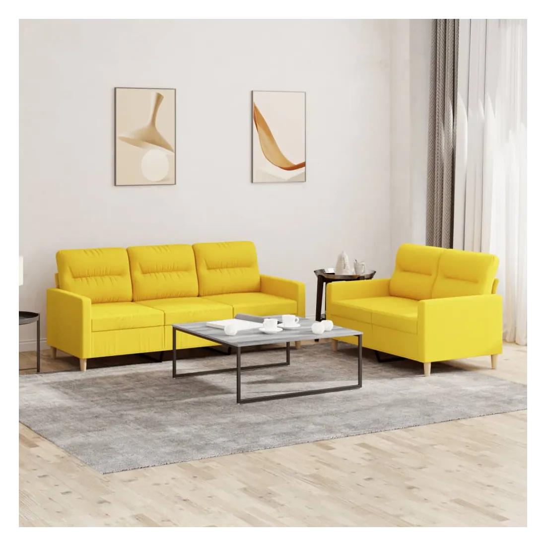 Cet ensemble de canapés est un excellent endroit pour discuter, lire, regarder la télévision ou simplement vous détendre. Il est destiné à être un point central de votre maison. Tissu durable : le tissu présente un aspect simple et épuré tout en restant respirant et durable.Structure robuste et stable : la structure en contreplaqué et en métal du canapé assure robustesse et stabilité.Expérience d'assise confortable : le canapé est très confortable grâce au siège et aux accoudoirs épais et rembourrés.