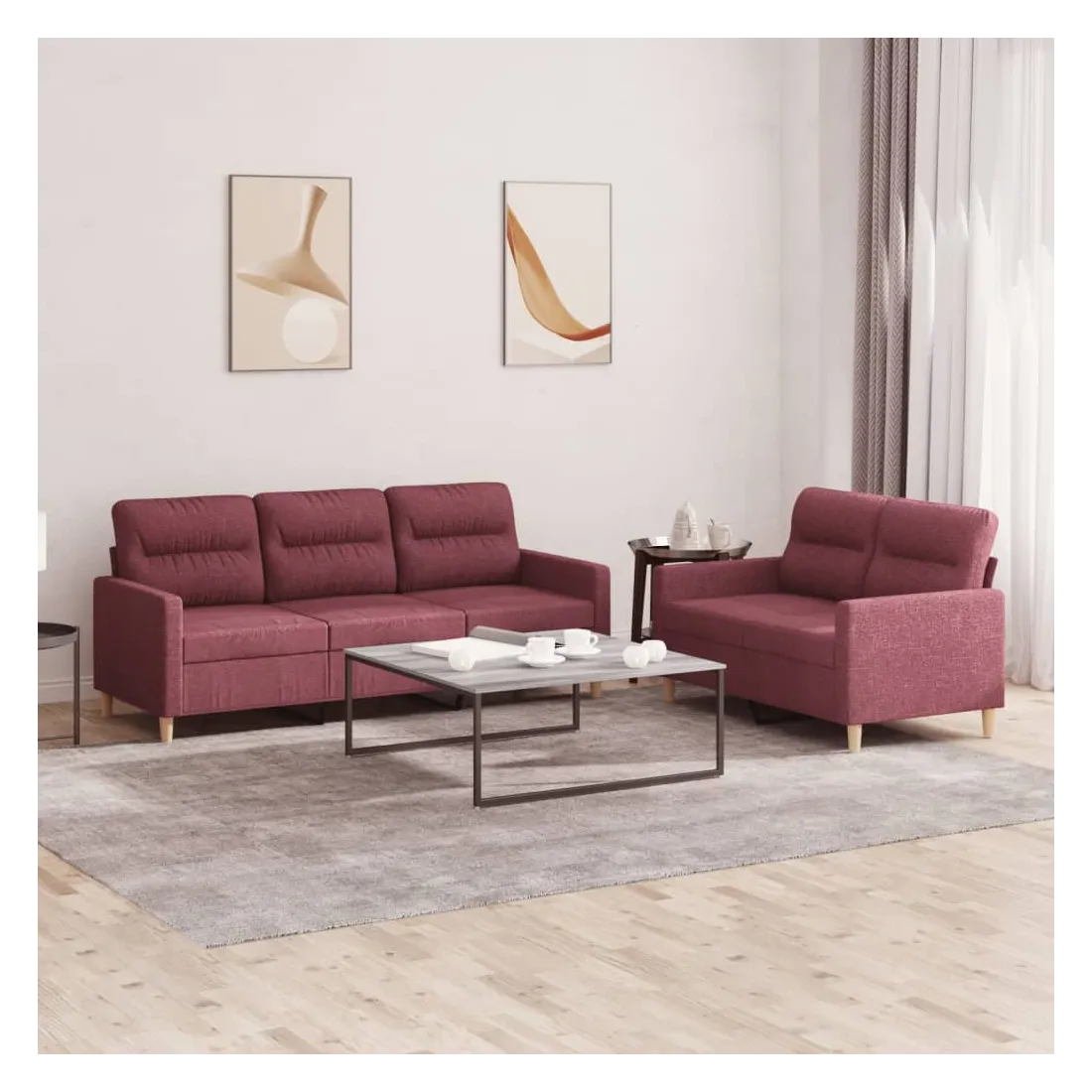 Cet ensemble de canapés est un excellent endroit pour discuter, lire, regarder la télévision ou simplement vous détendre. Il est destiné à être un point central de votre maison. Tissu durable : le tissu présente un aspect simple et épuré tout en restant respirant et durable.Structure robuste et stable : la structure en contreplaqué et en métal du canapé assure robustesse et stabilité.Expérience d'assise confortable : le canapé est très confortable grâce au siège et aux accoudoirs épais et rembourrés.