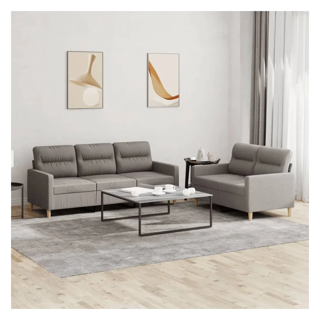 Cet ensemble de canapés est un excellent endroit pour discuter, lire, regarder la télévision ou simplement vous détendre. Il est destiné à être un point central de votre maison. Tissu durable : le tissu présente un aspect simple et épuré tout en restant respirant et durable.Structure robuste et stable : la structure en contreplaqué et en métal du canapé assure robustesse et stabilité.Expérience d'assise confortable : le canapé est très confortable grâce au siège et aux accoudoirs épais et rembourrés.