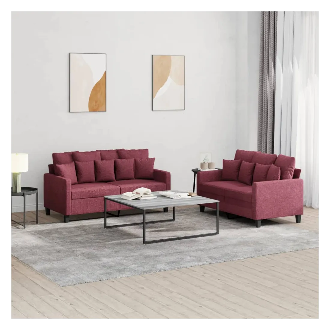 Cet ensemble de canapés est un excellent endroit pour discuter, lire, regarder la télévision ou simplement vous détendre. Il est destiné à être un point central de votre maison. Tissu durable : le tissu présente un aspect simple et épuré tout en restant respirant et durable. Structure robuste et stable : la structure en contreplaqué et en métal du canapé assure robustesse et stabilité. Expérience d'assise confortable : le canapé est très confortable avec le siège, les accoudoirs et les oreillers de dossier bien rembourrés.
