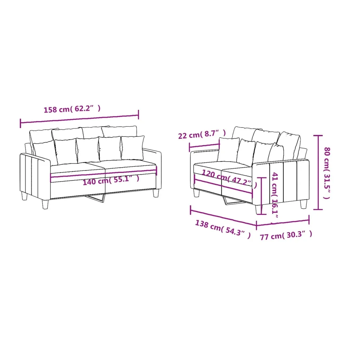 - Canapé à 2 places (140 cm) :