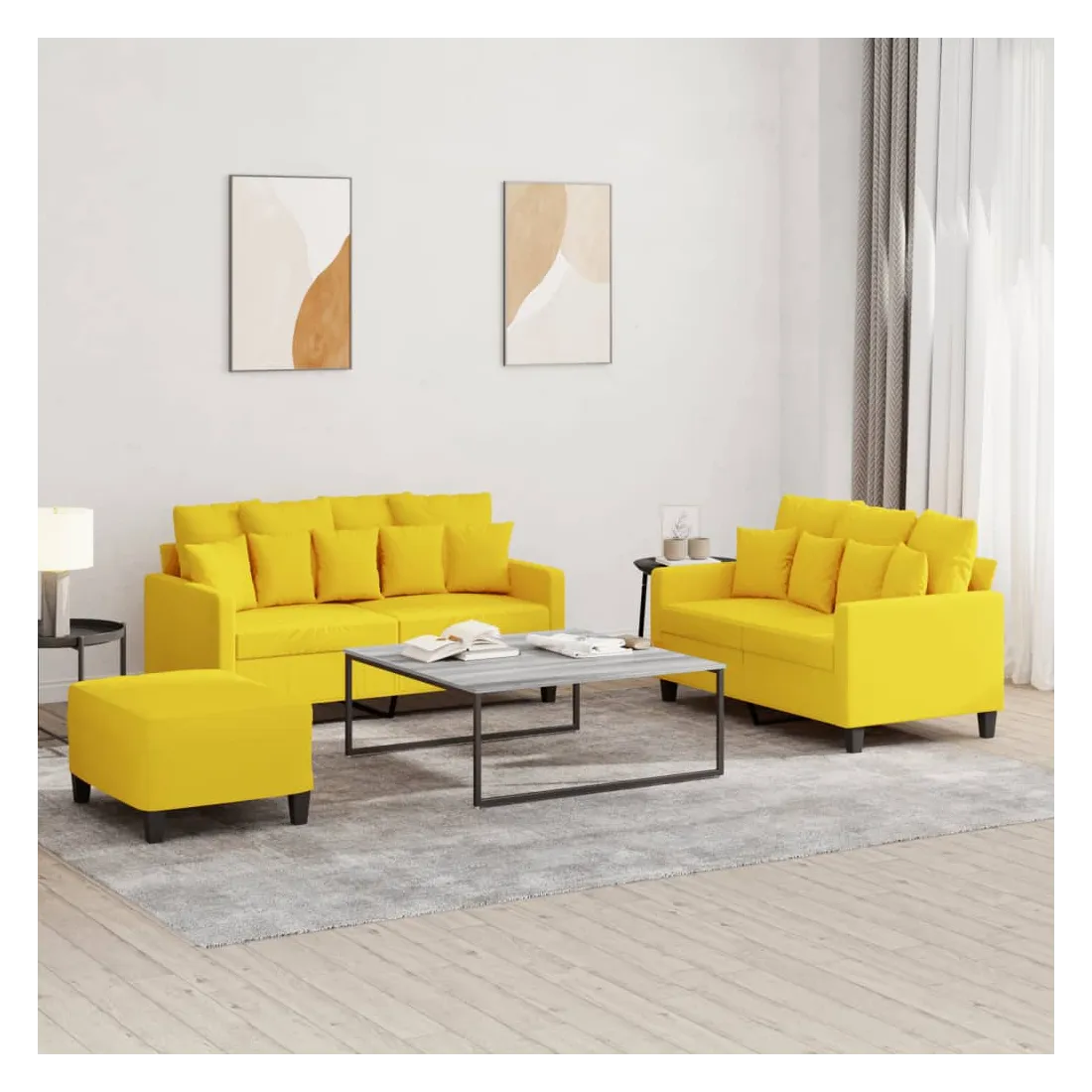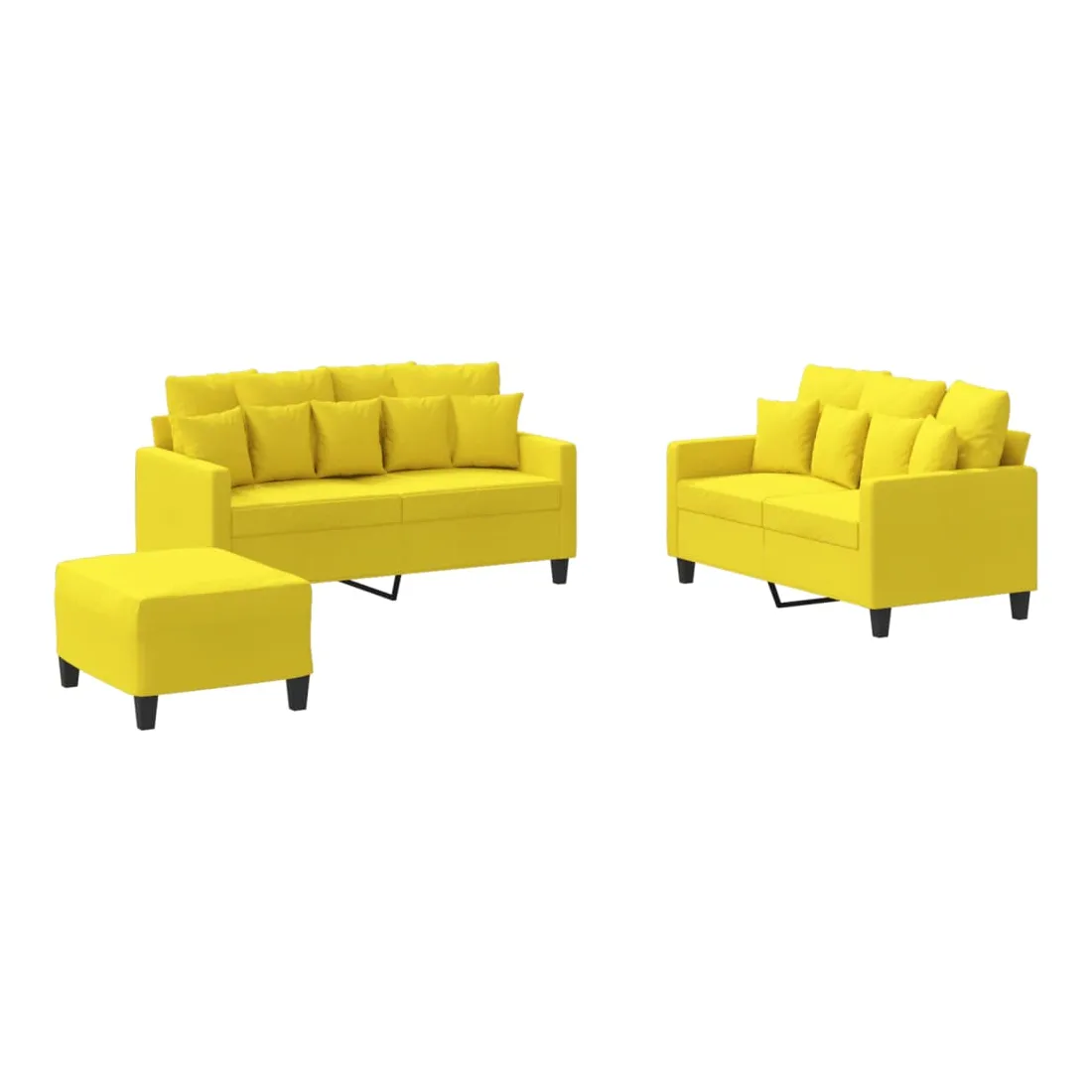 Cet ensemble de canapés est un excellent endroit pour discuter, lire, regarder la télévision ou simplement vous détendre. Il est destiné à être un point central de votre maison. Tissu durable : le tissu présente un aspect simple et épuré tout en restant respirant et durable.Structure robuste et stable : la structure en contreplaqué et en métal du canapé assure robustesse et stabilité. Expérience d'assise confortable : le canapé est très confortable avec le siège, les accoudoirs et les oreillers de dossier bien rembourrés. Pouf polyvalent : ce repose-pied convient pour reposer vos pieds lorsque vous êtes allongé dans un canapé ou pour vous offrir un siège supplémentaire dans votre pièce. De plus, le design simple et la taille compacte le rendent idéal pour presque tous vos espaces de vie.