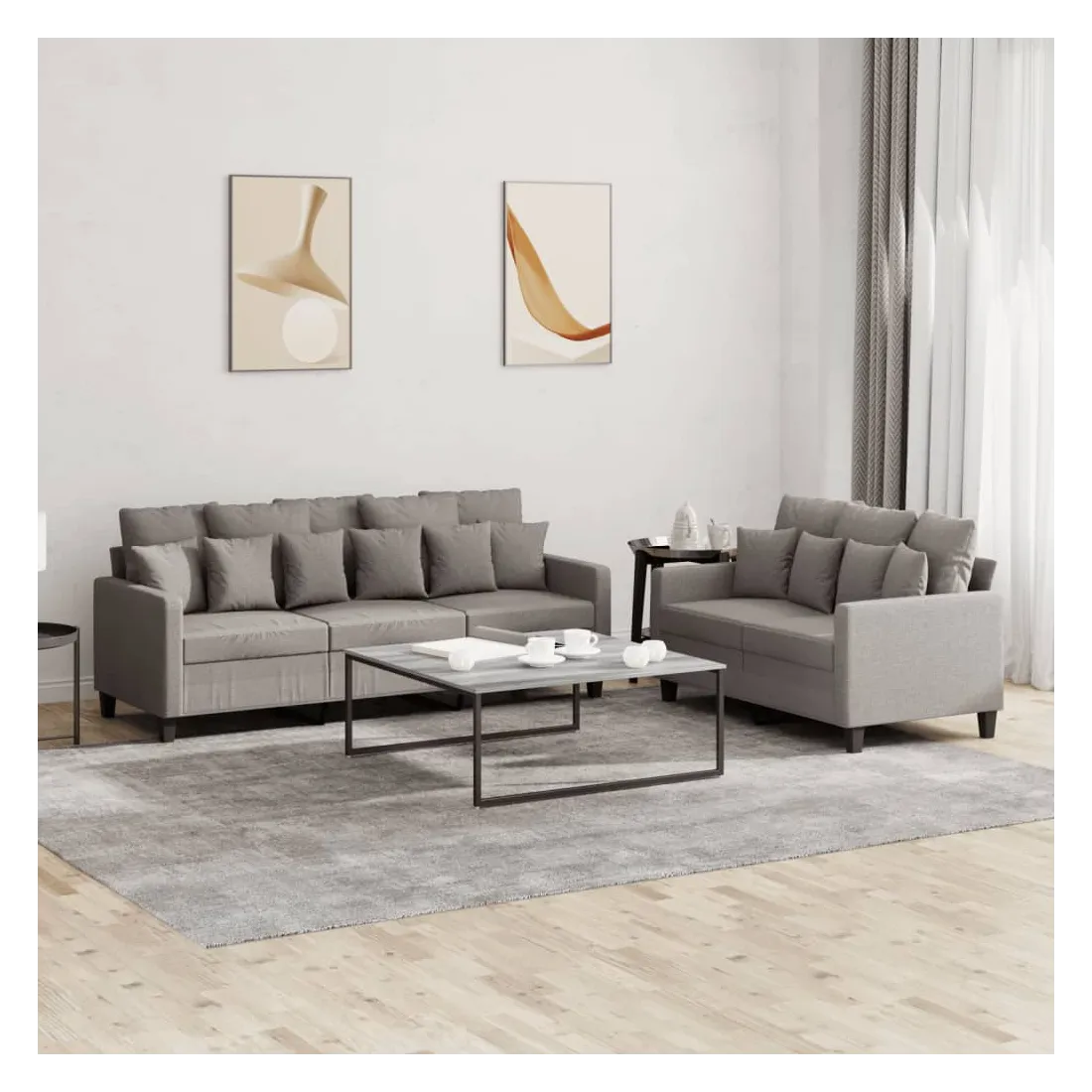 Cet ensemble de canapés est un excellent endroit pour discuter, lire, regarder la télévision ou simplement vous détendre. Il est destiné à être un point central de votre maison. Tissu durable : le tissu présente un aspect simple et épuré tout en restant respirant et durable. Structure robuste et stable : la structure en contreplaqué et en métal du canapé assure robustesse et stabilité. Expérience d'assise confortable : le canapé est très confortable avec le siège, les accoudoirs et les oreillers de dossier bien rembourrés.