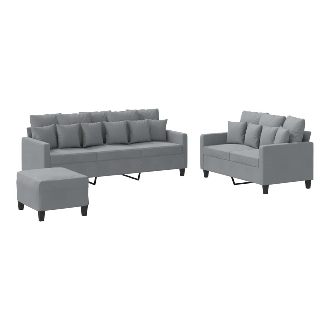 Cet ensemble de canapés est un excellent endroit pour discuter, lire, regarder la télévision ou simplement vous détendre. Il est destiné à être un point central de votre maison. Tissu durable : le tissu présente un aspect simple et épuré tout en restant respirant et durable.Structure robuste et stable : la structure en contreplaqué et en métal du canapé assure robustesse et stabilité. Expérience d'assise confortable : le canapé est très confortable avec le siège, les accoudoirs et les oreillers de dossier bien rembourrés. Pouf polyvalent : ce repose-pied convient pour reposer vos pieds lorsque vous êtes allongé dans un canapé ou pour vous offrir un siège supplémentaire dans votre pièce. De plus, le design simple et la taille compacte le rendent idéal pour presque tous vos espaces de vie.