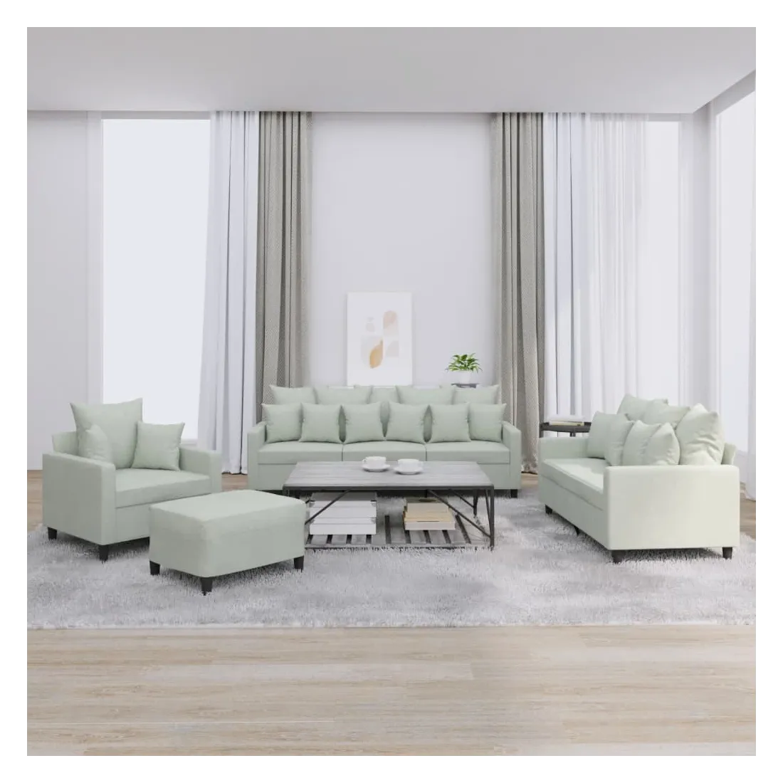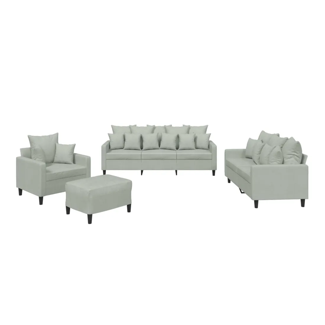Cet ensemble de canapés est un excellent endroit pour discuter, lire, regarder la télévision ou simplement vous détendre. Il est destiné à être un point central de votre maison. Velours doux : le velours est un tissu doux et confortable, agréable au toucher.Structure robuste et stable : la structure en contreplaqué et en métal du canapé assure robustesse et stabilité. Expérience d'assise confortable : le canapé est très confortable avec le siège, les accoudoirs et les oreillers de dossier bien rembourrés.Pouf polyvalent : ce repose-pied convient pour reposer vos pieds lorsque vous êtes allongé dans un canapé ou pour vous offrir un siège supplémentaire dans votre pièce. De plus, le design simple et la taille compacte le rendent idéal pour presque tous vos espaces de vie.