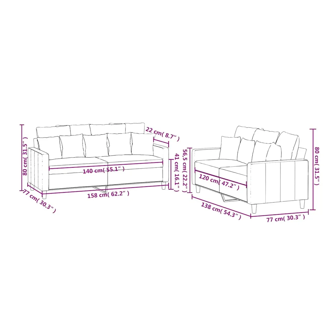 - Canapé à 2 places (140 cm) :