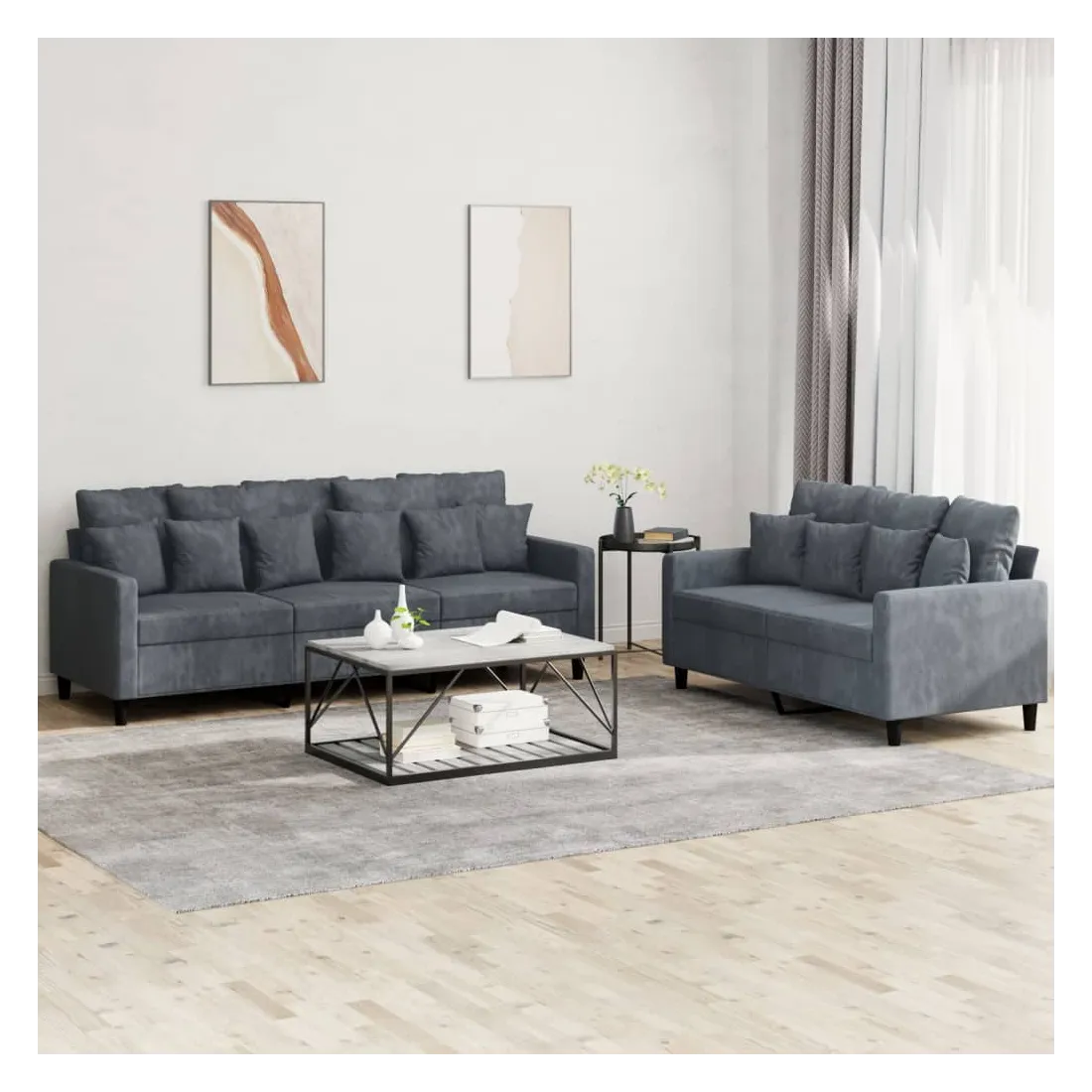 Cet ensemble de canapés est un excellent endroit pour discuter, lire, regarder la télévision ou simplement vous détendre. Il est destiné à être un point central de votre maison. Velours doux : le velours est un tissu doux et confortable, agréable au toucher.Structure robuste et stable : la structure en contreplaqué et en métal du canapé assure robustesse et stabilité. Expérience d'assise confortable : le canapé est très confortable avec le siège, les accoudoirs et les oreillers de dossier bien rembourrés.