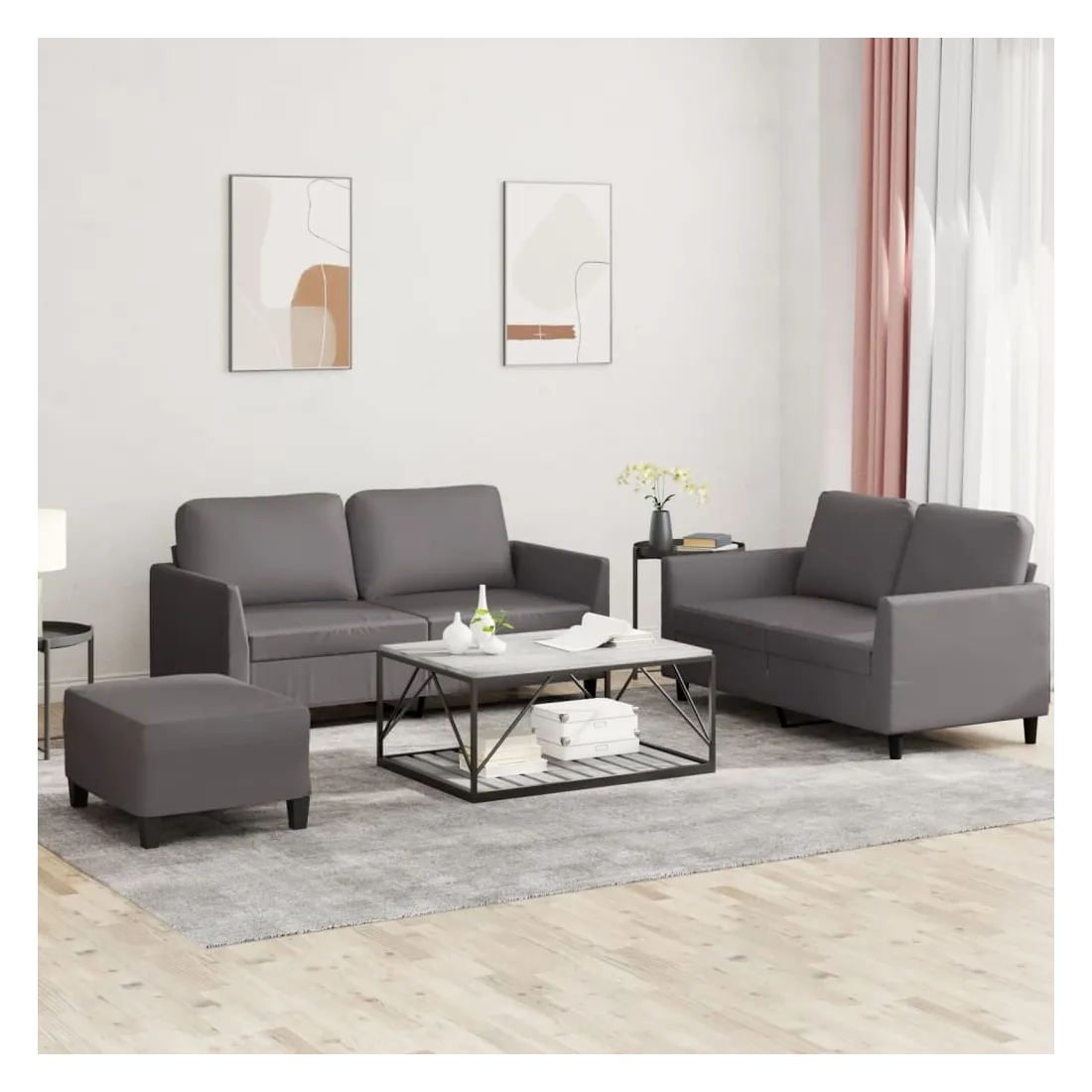 Cet ensemble de canapés est un excellent endroit pour discuter, lire, regarder la télévision ou simplement vous détendre. Il est destiné à être un point central de votre maison. Similicuir durable : le similicuir de qualité supérieure est un matériau très durable. Il est résistant aux taches, ce qui le rend facile à nettoyer avec un chiffon humide. La surface lisse donne également un aspect luxueux et la beauté du cuir véritable.Structure robuste et stable : la structure en contreplaqué et en métal du canapé assure robustesse et stabilité. Expérience d'assise confortable : le canapé est très confortable avec le siège, les accoudoirs et les oreillers de dossier bien rembourrés.Pouf polyvalent : ce repose-pied convient pour reposer vos pieds lorsque vous êtes allongé dans un canapé ou pour vous offrir un siège supplémentaire dans votre pièce. De plus, le design simple et la taille compacte le rendent idéal pour presque tous vos espaces de vie.