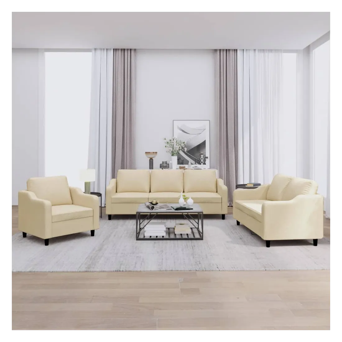 Cet ensemble de canapés est un excellent endroit pour discuter, lire, regarder la télévision ou simplement vous détendre. Il est destiné à être un point central de votre maison. Tissu durable : le tissu présente un aspect simple et épuré tout en restant respirant et durable.Structure robuste et stable : la structure en contreplaqué et en métal du canapé assure robustesse et stabilité. Expérience d'assise confortable : le canapé est très confortable avec le siège, les accoudoirs et les oreillers de dossier bien rembourrés.