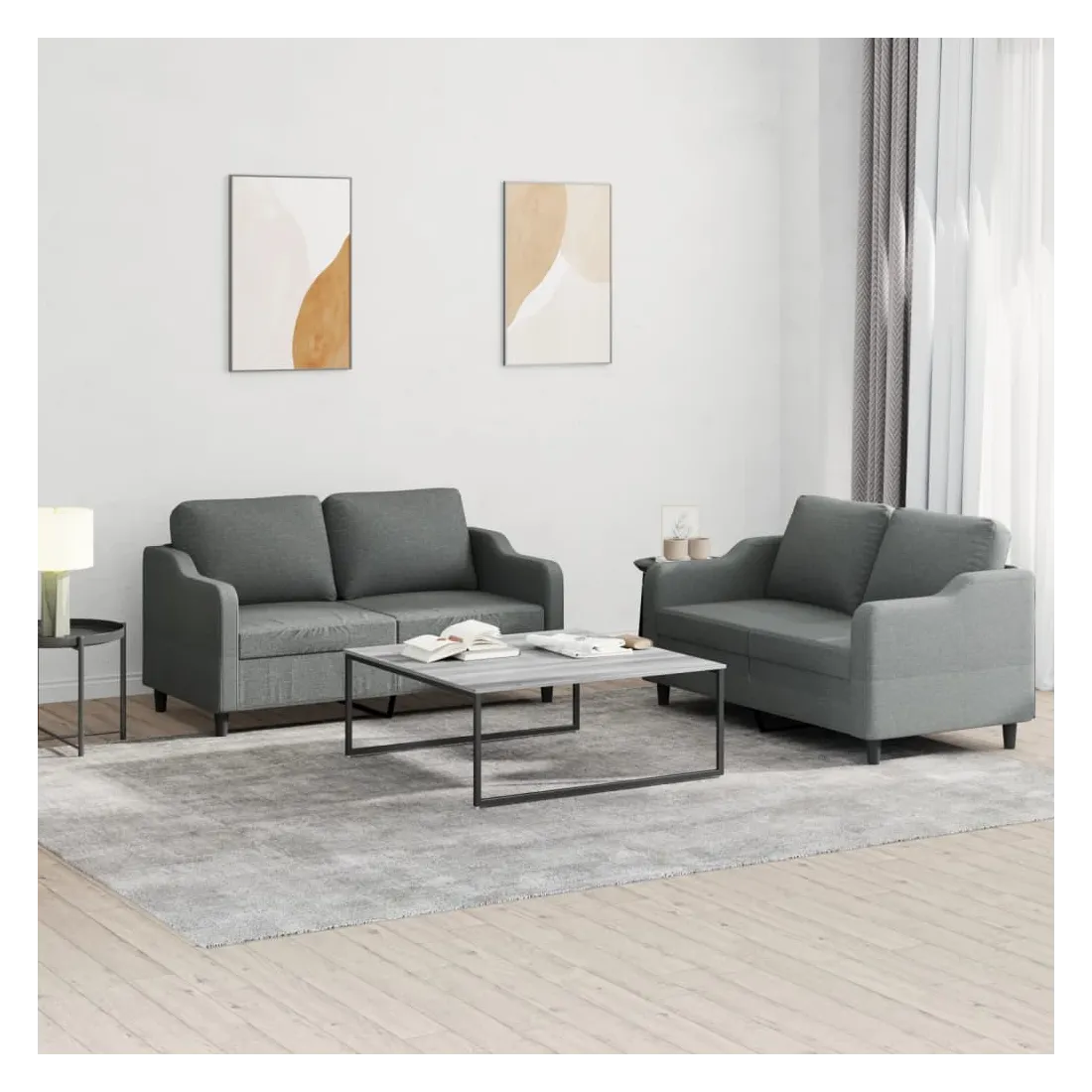 Cet ensemble de canapés est un excellent endroit pour discuter, lire, regarder la télévision ou simplement vous détendre. Il est destiné à être un point central de votre maison. Tissu durable : le tissu présente un aspect simple et épuré tout en restant respirant et durable. Structure robuste et stable : la structure en contreplaqué et en métal du canapé assure robustesse et stabilité. Expérience d'assise confortable : le canapé est très confortable avec le siège, les accoudoirs et les oreillers de dossier bien rembourrés.
