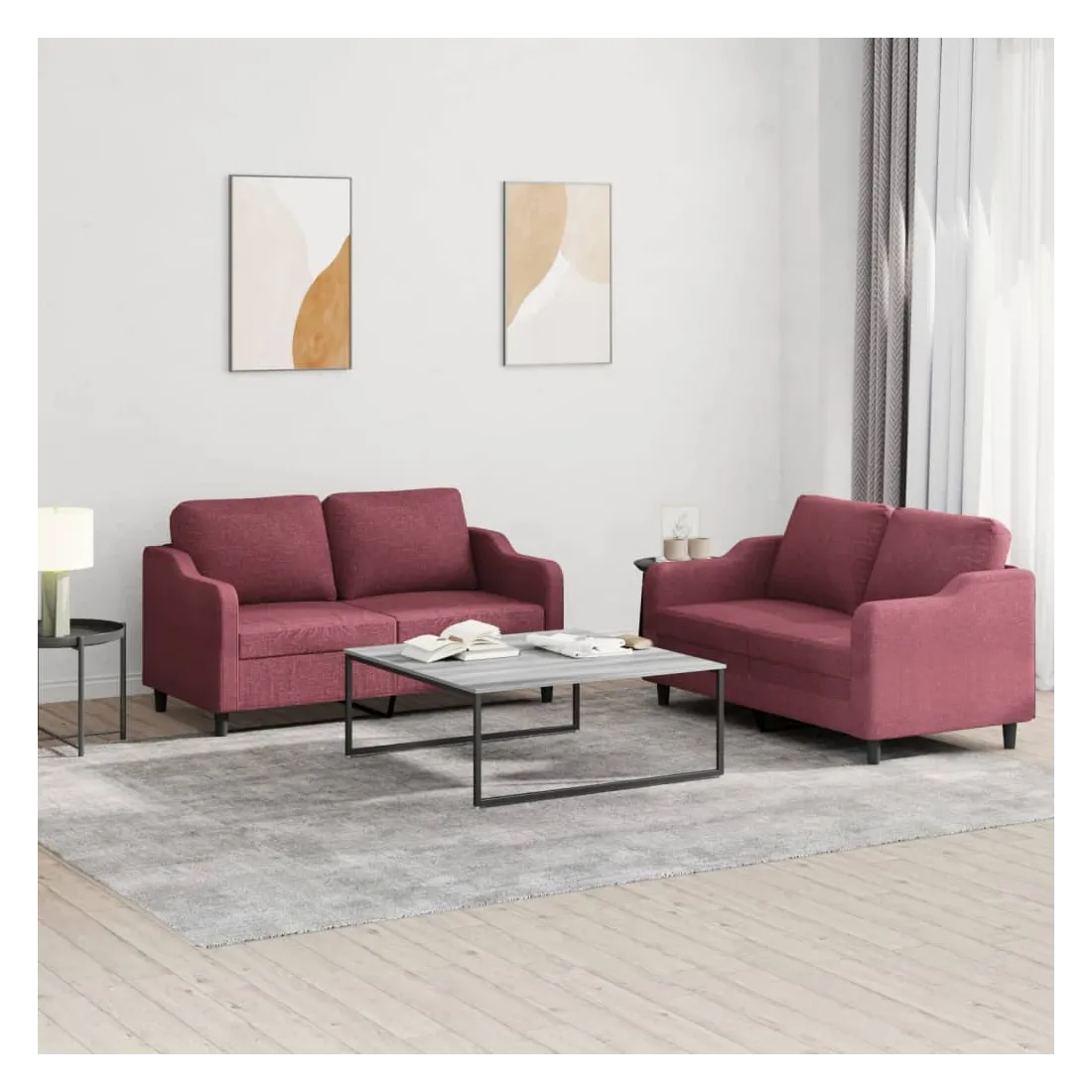 Cet ensemble de canapés est un excellent endroit pour discuter, lire, regarder la télévision ou simplement vous détendre. Il est destiné à être un point central de votre maison. Tissu durable : le tissu présente un aspect simple et épuré tout en restant respirant et durable. Structure robuste et stable : la structure en contreplaqué et en métal du canapé assure robustesse et stabilité. Expérience d'assise confortable : le canapé est très confortable avec le siège, les accoudoirs et les oreillers de dossier bien rembourrés.