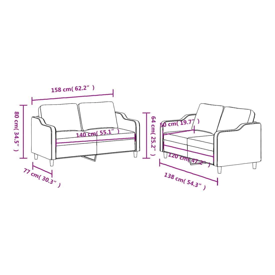 - Canapé à 2 places (140 cm) :