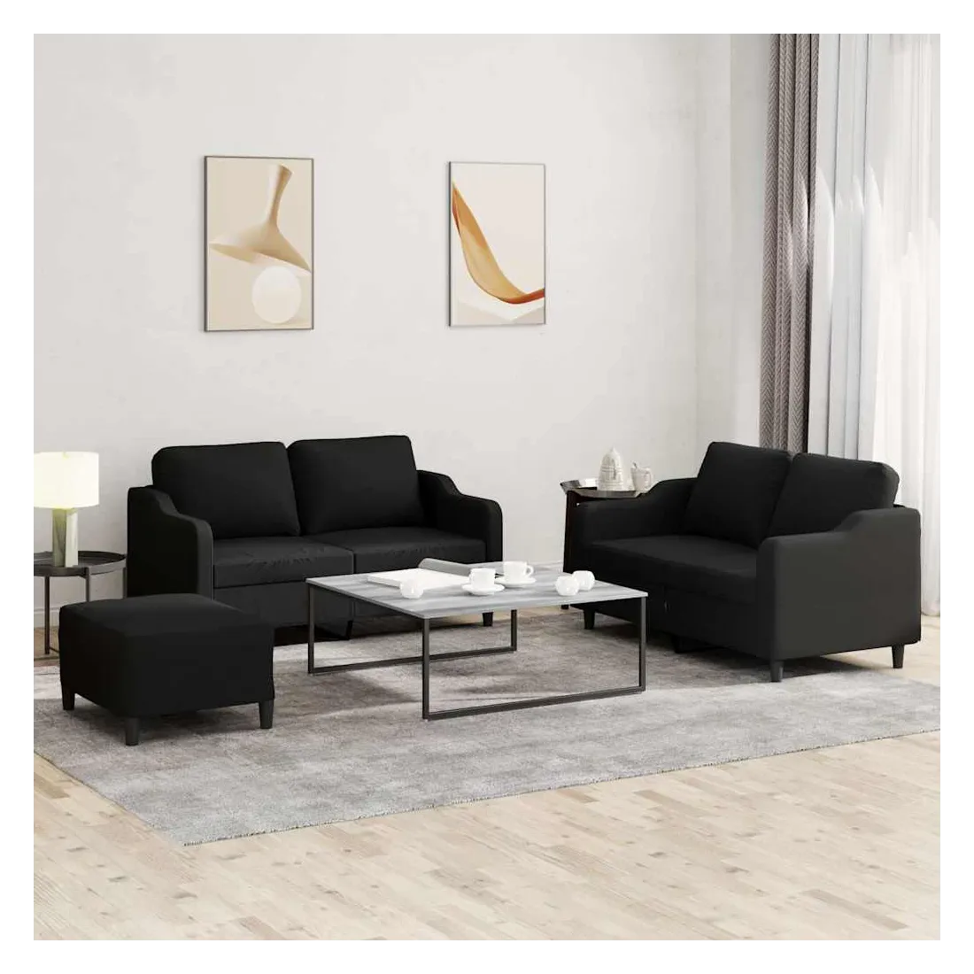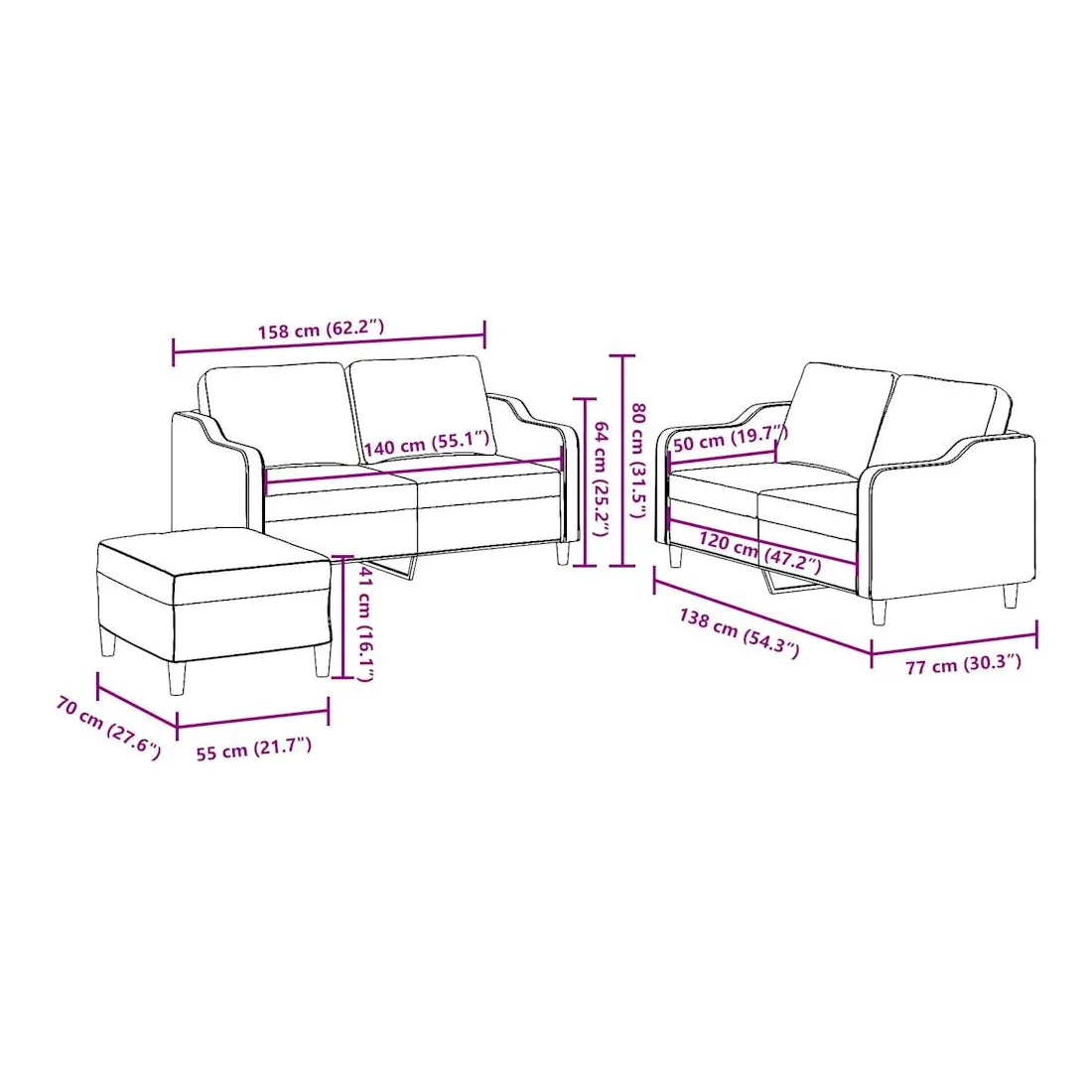 Cet ensemble de canapés est un excellent endroit pour discuter, lire, regarder la télévision ou simplement vous détendre. Il est destiné à être un point central de votre maison. Tissu durable : le tissu présente un aspect simple et épuré tout en restant respirant et durable.Structure robuste et stable : la structure en contreplaqué et en métal du canapé assure robustesse et stabilité. Expérience d'assise confortable : le canapé est très confortable avec le siège, les accoudoirs et les oreillers de dossier bien rembourrés. Pouf polyvalent : ce repose-pied convient pour reposer vos pieds lorsque vous êtes allongé dans un canapé ou pour vous offrir un siège supplémentaire dans votre pièce. De plus, le design simple et la taille compacte le rendent idéal pour presque tous vos espaces de vie.
