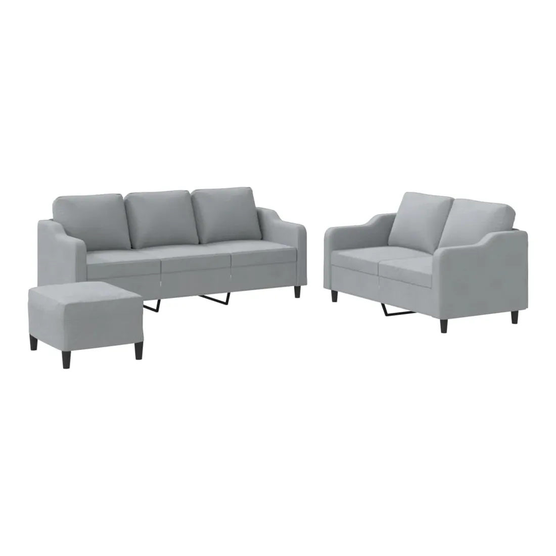 Cet ensemble de canapés est un excellent endroit pour discuter, lire, regarder la télévision ou simplement vous détendre. Il est destiné à être un point central de votre maison. Tissu durable : le tissu présente un aspect simple et épuré tout en restant respirant et durable.Structure robuste et stable : la structure en contreplaqué et en métal du canapé assure robustesse et stabilité. Expérience d'assise confortable : le canapé est très confortable avec le siège, les accoudoirs et les oreillers de dossier bien rembourrés. Pouf polyvalent : ce repose-pied convient pour reposer vos pieds lorsque vous êtes allongé dans un canapé ou pour vous offrir un siège supplémentaire dans votre pièce. De plus, le design simple et la taille compacte le rendent idéal pour presque tous vos espaces de vie.