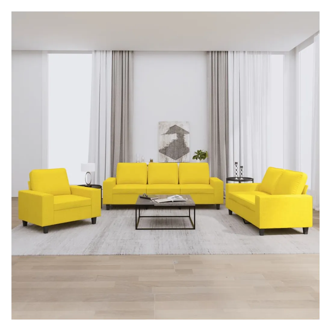 Cet ensemble de canapés est un excellent endroit pour discuter, lire, regarder la télévision ou simplement vous détendre. Il est destiné à être un point central de votre maison. Tissu durable : le tissu présente un aspect simple et épuré tout en restant respirant et durable. Structure robuste et stable : la structure en contreplaqué et en métal du canapé assure robustesse et stabilité. Expérience d'assise confortable : le canapé est très confortable avec le siège, les accoudoirs et les oreillers de dossier bien rembourrés.