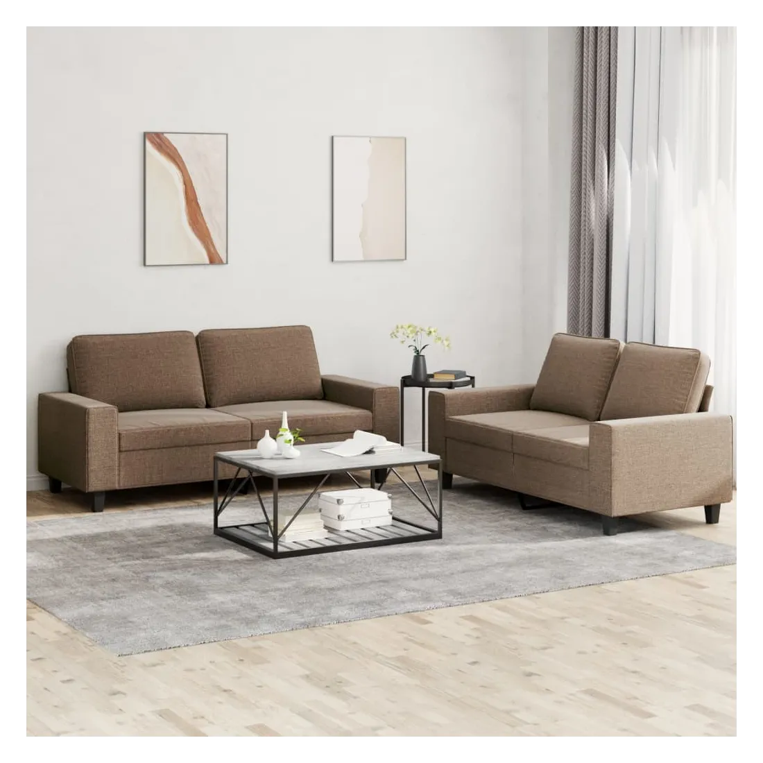 Cet ensemble de canapés est un excellent endroit pour discuter, lire, regarder la télévision ou simplement vous détendre. Il est destiné à être un point central de votre maison. Tissu durable : le tissu présente un aspect simple et épuré tout en restant respirant et durable.Structure robuste et stable : la structure en contreplaqué et en métal du canapé assure robustesse et stabilité.Expérience d'assise confortable : le canapé est très confortable avec le siège, les accoudoirs et les oreillers de dossier bien rembourrés.