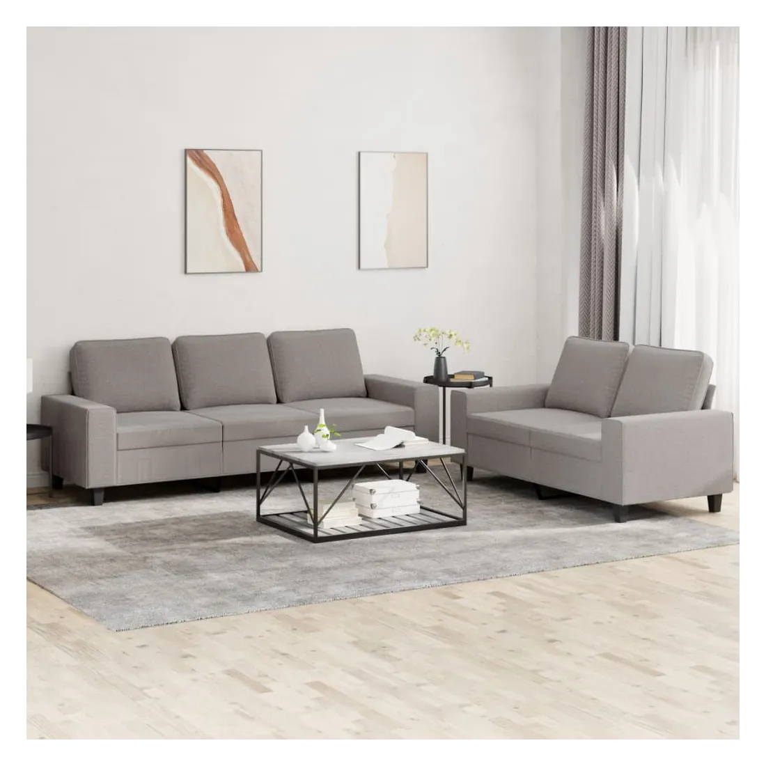 Cet ensemble de canapés est un excellent endroit pour discuter, lire, regarder la télévision ou simplement vous détendre. Il est destiné à être un point central de votre maison. Tissu durable : le tissu présente un aspect simple et épuré tout en restant respirant et durable.Structure robuste et stable : la structure en contreplaqué et en métal du canapé assure robustesse et stabilité.Expérience d'assise confortable : le canapé est très confortable avec le siège, les accoudoirs et les oreillers de dossier bien rembourrés.