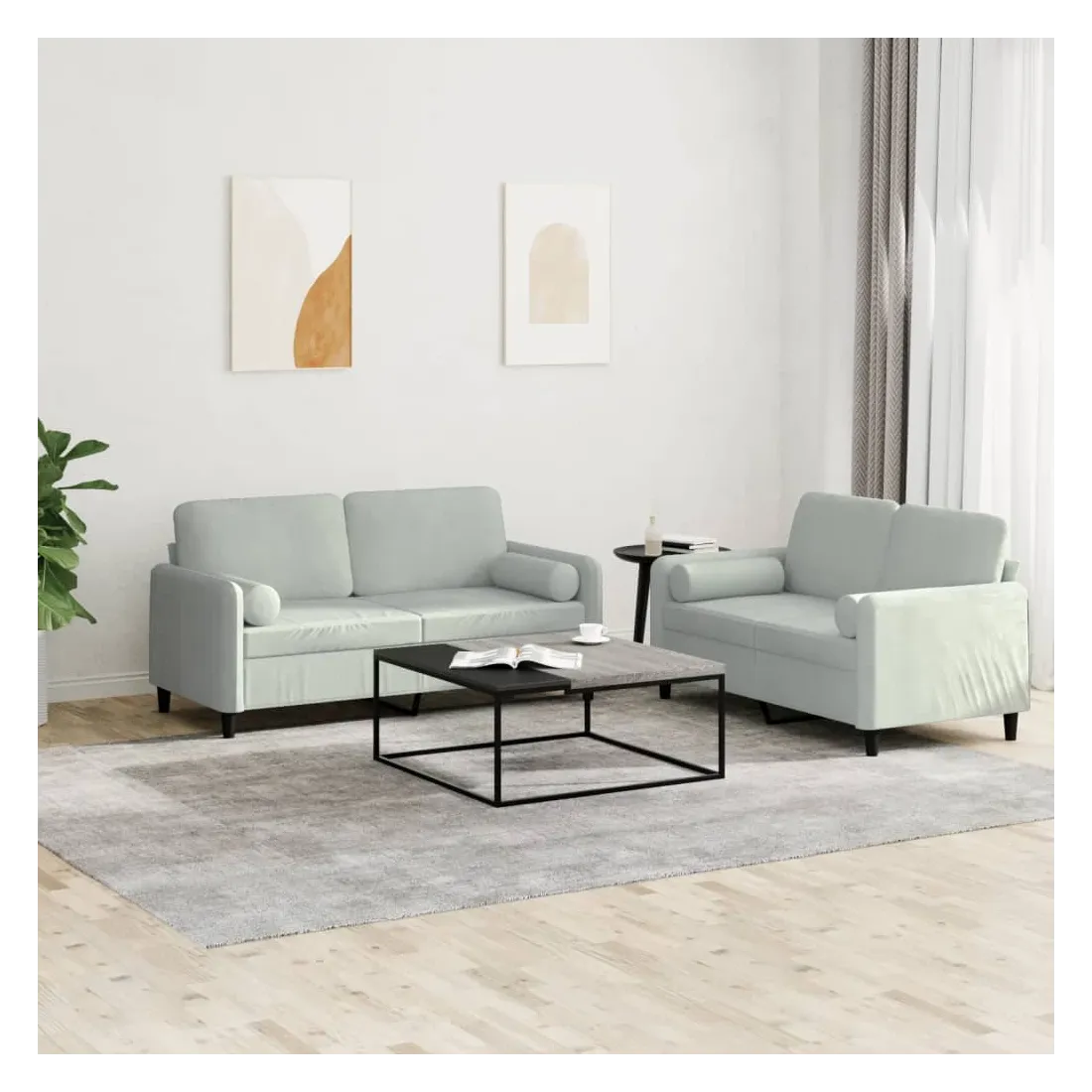 Cet ensemble de canapés est un excellent endroit pour discuter, lire, regarder la télévision ou simplement vous détendre. Il est destiné à être un point central de votre maison. Velours doux : le velours est un tissu doux et confortable, agréable au toucher.Structure robuste et stable : la structure en contreplaqué et en métal du canapé assure robustesse et stabilité.Expérience d'assise confortable : le canapé est très confortable avec le siège, les accoudoirs et les oreillers de dossier bien rembourrés.Oreillers cylindriques pratiques : ces oreillers cylindriques non seulement embellissent votre décor mais ils peuvent également apporter un confort supplémentaire lorsque vous êtes assis ou allongé.