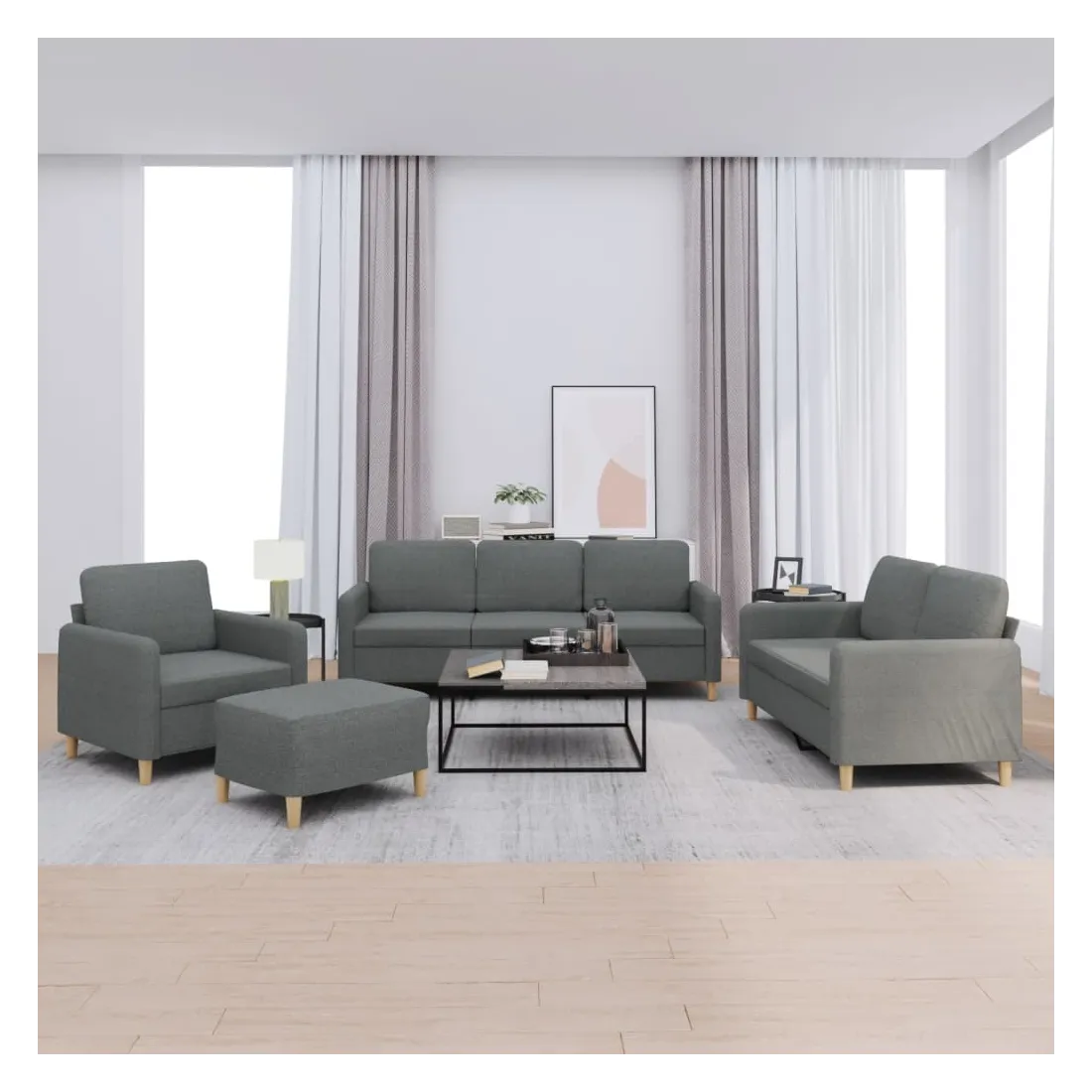 Cet ensemble de canapés est un excellent endroit pour discuter, lire, regarder la télévision ou simplement vous détendre. Il est destiné à être un point central de votre maison. Tissu durable : le tissu présente un aspect simple et épuré tout en restant respirant et durable.Structure robuste et stable : la structure en contreplaqué et en métal du canapé assure robustesse et stabilité.Expérience d'assise confortable : le canapé est très confortable avec le siège, les accoudoirs et les coussins de dossier bien rembourrés.Pouf polyvalent : ce repose-pied convient pour reposer vos pieds lorsque vous êtes allongé dans un canapé ou pour vous offrir un siège supplémentaire dans votre pièce. De plus, le design simple et la taille compacte le rendent idéal pour presque tous vos espaces de vie.