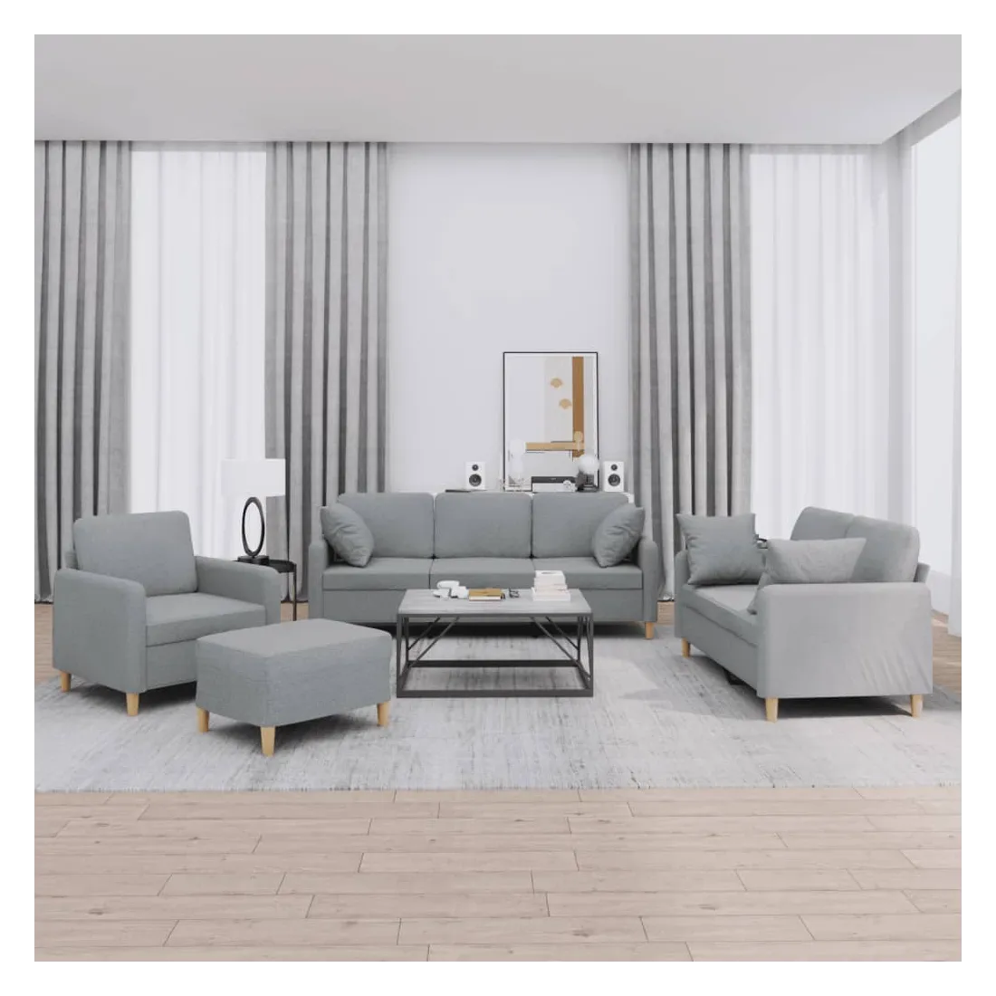 Cet ensemble de canapés est un excellent endroit pour discuter, lire, regarder la télévision ou simplement vous détendre. Il est destiné à être un point central de votre maison. Tissu durable : le tissu présente un aspect simple et épuré tout en restant respirant et durable.Structure robuste et stable : la structure en contreplaqué et en métal du canapé assure robustesse et stabilité.Expérience d'assise confortable : le canapé est très confortable avec le siège, les accoudoirs et les coussins de dossier bien rembourrés.Oreillers de canapé pratiques : ces oreillers décoratifs carrés non seulement embellissent votre décor mais ils peuvent également apporter un confort supplémentaire lorsque vous êtes assis ou allongé.Pouf polyvalent : ce repose-pied convient pour reposer vos pieds lorsque vous êtes allongé dans un canapé ou pour vous offrir un siège supplémentaire dans votre pièce. De plus, le design simple et la taille compacte le rendent idéal pour presque tous vos espaces de vie.