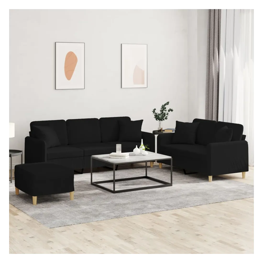 Cet ensemble de canapés est un excellent endroit pour discuter, lire, regarder la télévision ou simplement vous détendre. Il est destiné à être un point central de votre maison. Tissu durable : le tissu présente un aspect simple et épuré tout en restant respirant et durable.Structure robuste et stable : la structure en contreplaqué et en métal du canapé assure robustesse et stabilité.Expérience d'assise confortable : le canapé est très confortable avec le siège, les accoudoirs et les oreillers de dossier bien rembourrés.Oreillers de canapé pratiques : ces oreillers décoratifs carrés non seulement embellissent votre décor mais ils peuvent également apporter un confort supplémentaire lorsque vous êtes assis ou allongé.Pouf polyvalent : ce repose-pied convient pour reposer vos pieds lorsque vous êtes allongé dans un canapé ou pour vous offrir un siège supplémentaire dans votre pièce. De plus, le design simple et la taille compacte le rendent idéal pour presque tous vos espaces de vie.
