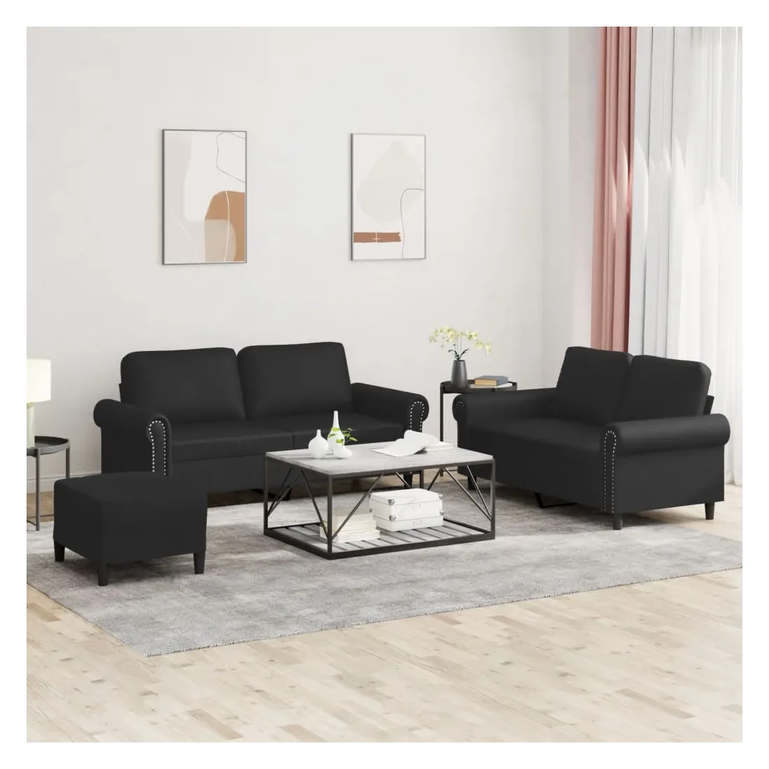 Cet ensemble de canapés est un excellent endroit pour discuter, lire, regarder la télévision ou simplement vous détendre. Il est destiné à être un point central de votre maison. Similicuir durable : le similicuir est un matériau très durable. Il est résistant aux taches, ce qui le rend facile à nettoyer avec un chiffon humide. La surface lisse donne également un aspect luxueux et la beauté du cuir véritable.Structure robuste et stable : la structure en contreplaqué et en métal du canapé assure robustesse et stabilité.Expérience d'assise confortable : le canapé est très confortable avec le siège, les accoudoirs et les oreillers de dossier bien rembourrés.Pouf polyvalent : ce repose-pied convient pour reposer vos pieds lorsque vous êtes allongé dans un canapé ou pour vous offrir un siège supplémentaire dans votre pièce. De plus, le design simple et la taille compacte le rendent idéal pour presque tous vos espaces de vie.