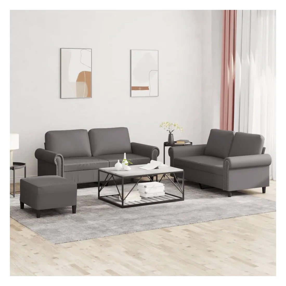 Cet ensemble de canapés est un excellent endroit pour discuter, lire, regarder la télévision ou simplement vous détendre. Il est destiné à être un point central de votre maison. Similicuir durable : le similicuir est un matériau très durable. Il est résistant aux taches, ce qui le rend facile à nettoyer avec un chiffon humide. La surface lisse donne également un aspect luxueux et la beauté du cuir véritable.Structure robuste et stable : la structure en contreplaqué et en métal du canapé assure robustesse et stabilité.Expérience d'assise confortable : le canapé est très confortable avec le siège, les accoudoirs et les oreillers de dossier bien rembourrés.Pouf polyvalent : ce repose-pied convient pour reposer vos pieds lorsque vous êtes allongé dans un canapé ou pour vous offrir un siège supplémentaire dans votre pièce. De plus, le design simple et la taille compacte le rendent idéal pour presque tous vos espaces de vie.