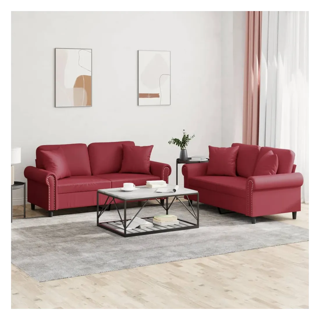 Cet ensemble de canapés est un excellent endroit pour discuter, lire, regarder la télévision ou simplement vous détendre. Il est destiné à être un point central de votre maison. Similicuir durable : le similicuir est un matériau très durable. Il est résistant aux taches, ce qui le rend facile à nettoyer avec un chiffon humide. La surface lisse donne également un aspect luxueux et la beauté du cuir véritable.Structure robuste et stable : la structure en contreplaqué et en métal du canapé assure robustesse et stabilité.Expérience d'assise confortable : le canapé est très confortable avec le siège, les accoudoirs et les oreillers de dossier bien rembourrés.Oreillers de canapé pratiques : ces oreillers décoratifs carrés non seulement embellissent votre décor mais ils peuvent également apporter un confort supplémentaire lorsque vous êtes assis ou allongé.