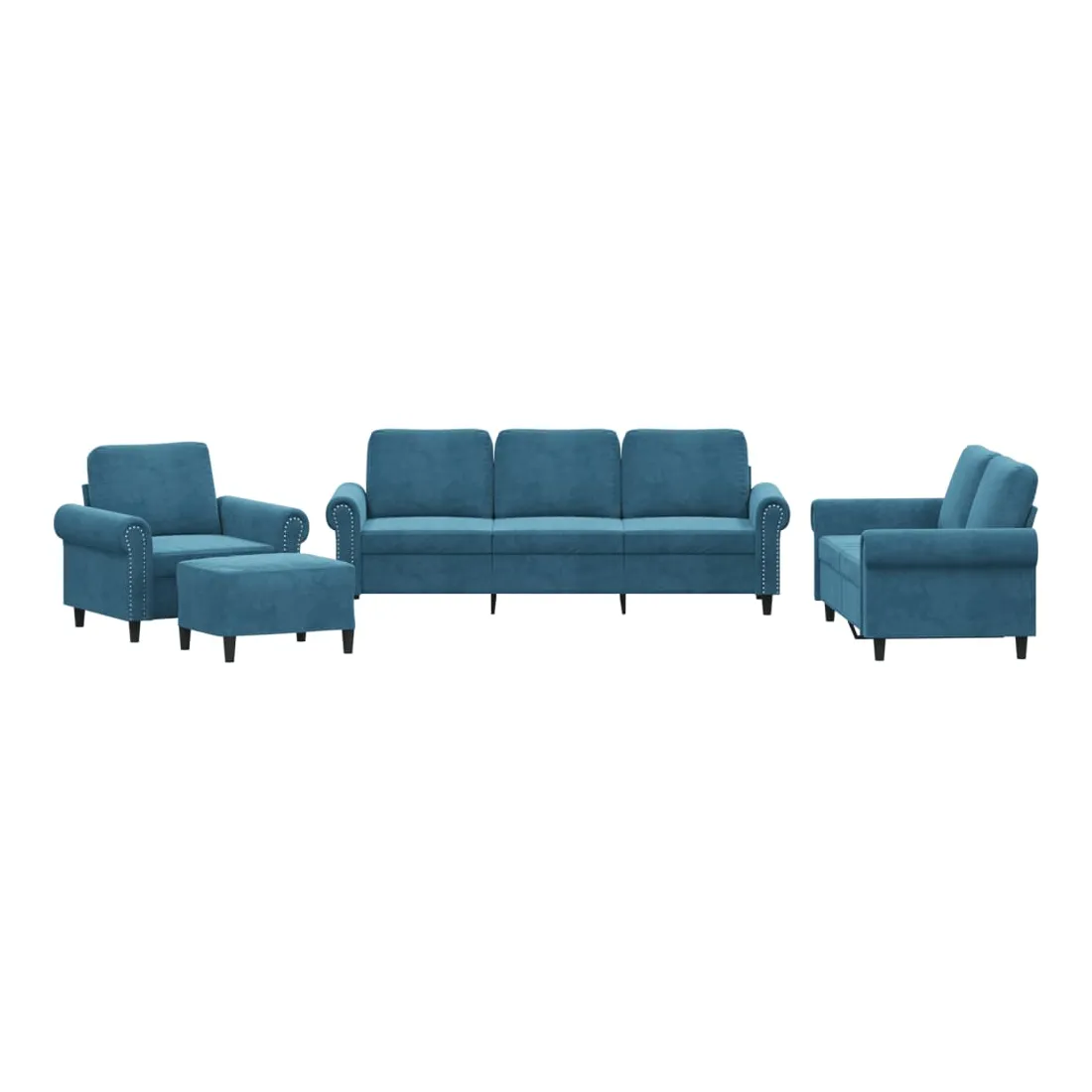 Ensemble de canapés 4 pcs avec coussins Bleu Velours