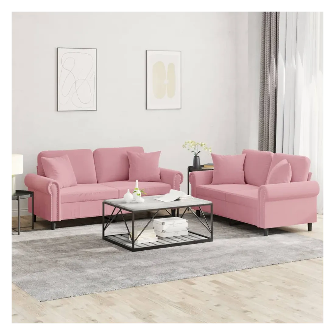 Cet ensemble de canapés est un excellent endroit pour discuter, lire, regarder la télévision ou simplement vous détendre. Il est destiné à être un point central de votre maison. Velours doux : le velours est un tissu doux et confortable, agréable au toucher.Structure robuste et stable : la structure en contreplaqué et en métal du canapé assure robustesse et stabilité.Expérience d'assise confortable : le canapé est très confortable avec le siège, les accoudoirs et les oreillers de dossier bien rembourrés.Oreillers de canapé pratiques : ces oreillers décoratifs carrés non seulement embellissent votre décor mais ils peuvent également apporter un confort supplémentaire lorsque vous êtes assis ou allongé.