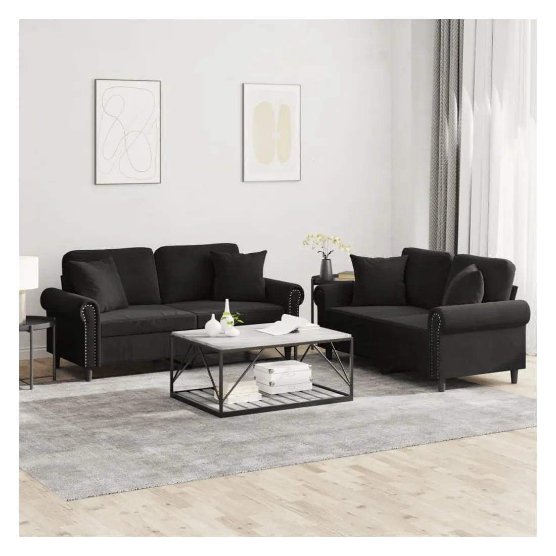 Cet ensemble de canapés est un excellent endroit pour discuter, lire, regarder la télévision ou simplement vous détendre. Il est destiné à être un point central de votre maison. Velours doux : le velours est un tissu doux et confortable, agréable au toucher.Structure robuste et stable : la structure en contreplaqué et en métal du canapé assure robustesse et stabilité.Expérience d'assise confortable : le canapé est très confortable avec le siège, les accoudoirs et les oreillers de dossier bien rembourrés.Oreillers de canapé pratiques : ces oreillers décoratifs carrés non seulement embellissent votre décor mais ils peuvent également apporter un confort supplémentaire lorsque vous êtes assis ou allongé.