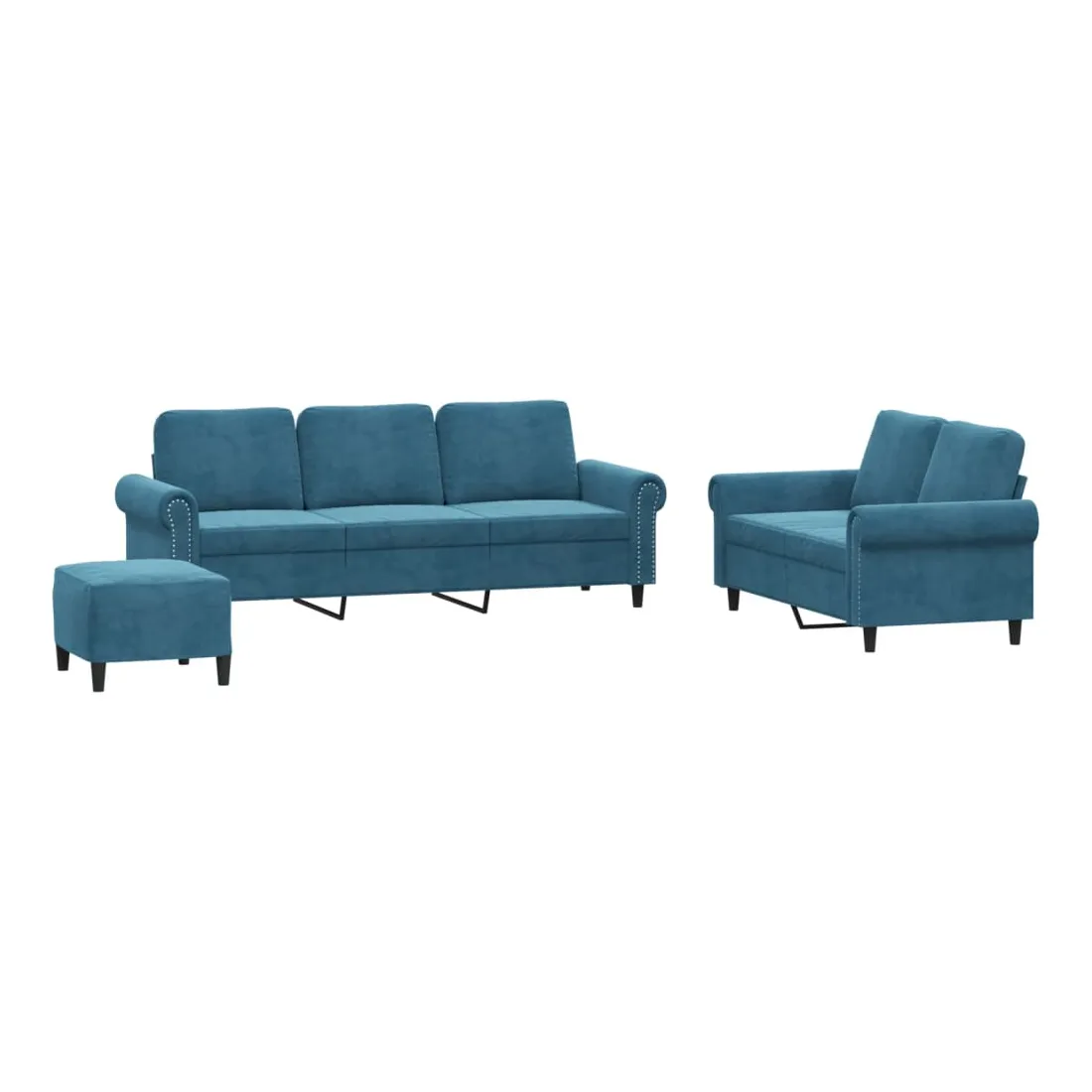 Cet ensemble de canapés est un excellent endroit pour discuter, lire, regarder la télévision ou simplement vous détendre. Il est destiné à être un point central de votre maison. Velours doux : le velours est un tissu doux et confortable, agréable au toucher.Structure robuste et stable : la structure en contreplaqué et en métal du canapé assure robustesse et stabilité.Expérience d'assise confortable : le canapé est très confortable avec le siège, les accoudoirs et les oreillers de dossier bien rembourrés.Pouf polyvalent : ce repose-pied convient pour reposer vos pieds lorsque vous êtes allongé dans un canapé, ou pour vous offrir un siège supplémentaire dans votre pièce. De plus, le design simple et la taille compacte le rendent idéal pour presque tous vos espaces de vie.
