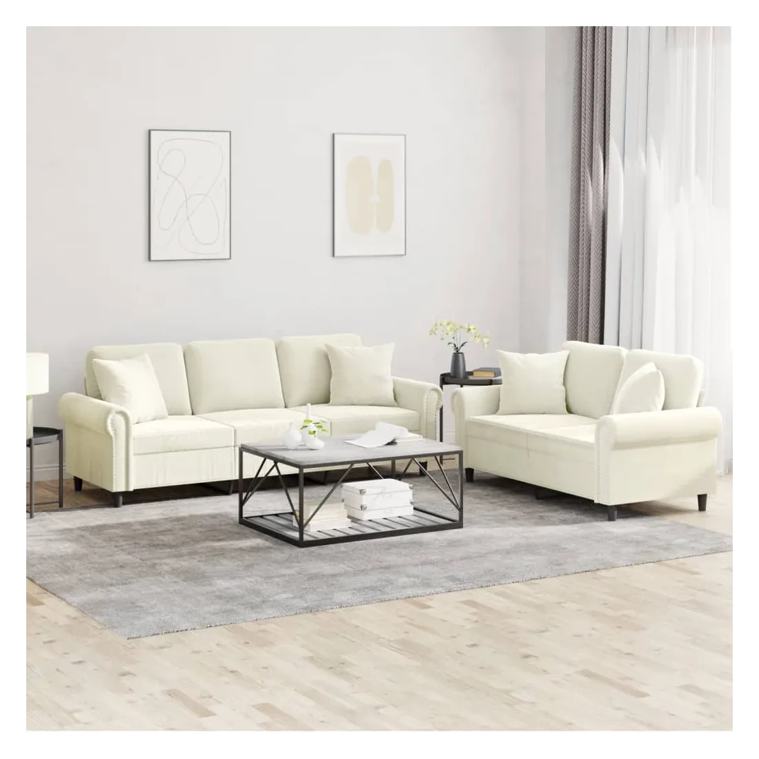 Cet ensemble de canapés est un excellent endroit pour discuter, lire, regarder la télévision ou simplement vous détendre. Il est destiné à être un point central de votre maison. Velours doux : le velours est un tissu doux et confortable, agréable au toucher.Structure robuste et stable : la structure en contreplaqué et en métal du canapé assure robustesse et stabilité.Expérience d'assise confortable : le canapé est très confortable avec le siège, les accoudoirs et les oreillers de dossier bien rembourrés.Oreillers de canapé pratiques : ces oreillers décoratifs carrés non seulement embellissent votre décor mais ils peuvent également apporter un confort supplémentaire lorsque vous êtes assis ou allongé.