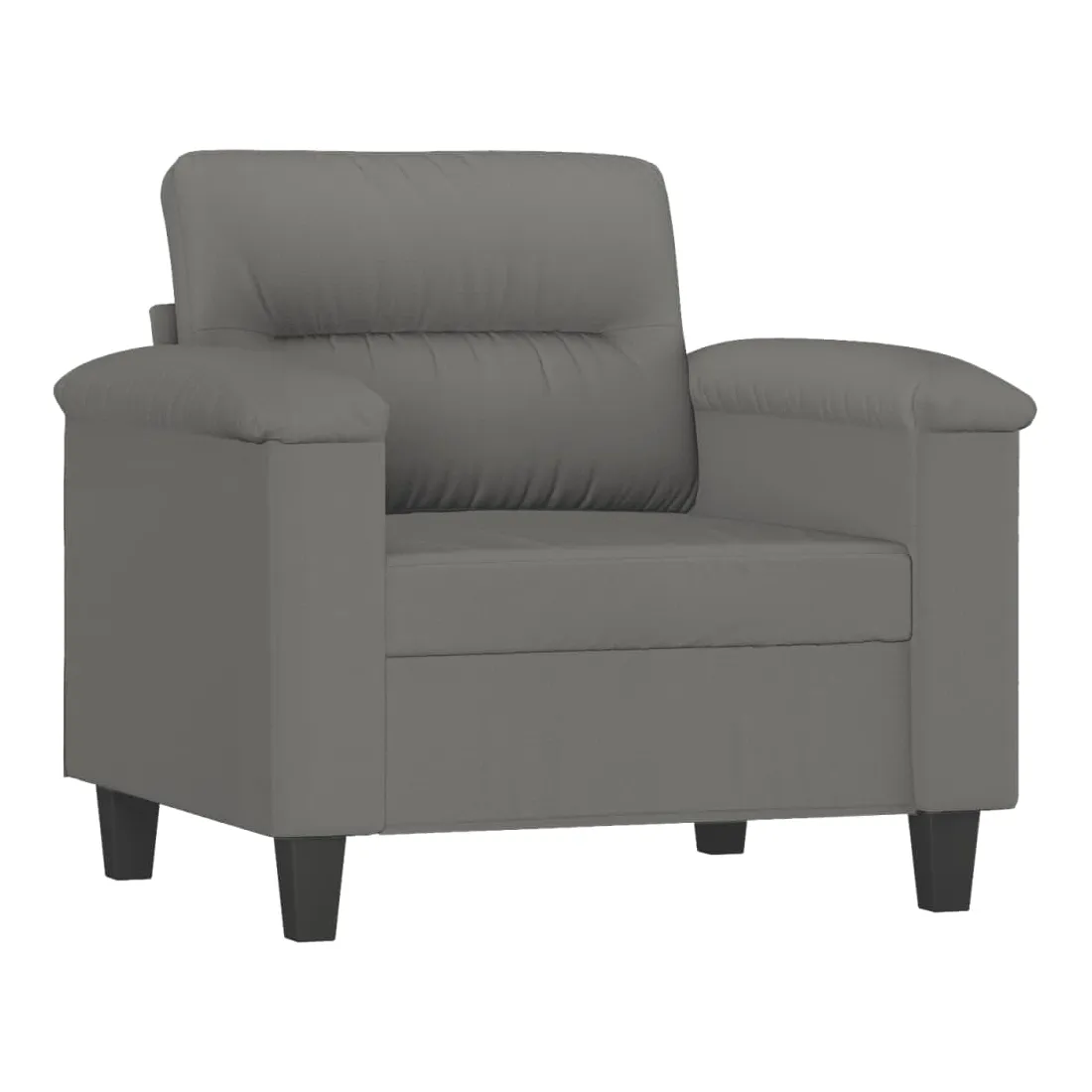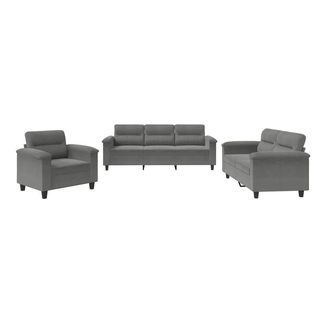 Cet ensemble de canapés est un excellent endroit pour discuter, lire, regarder la télévision ou simplement vous détendre. Il est destiné à être un point central de votre maison. Microfibre résistant : le microfibre est un tissu synthétique composé de fibres ultra-fines, particulièrement résistantes aux taches. Le tissu en microfibre est un excellent choix pour le rembourrage des meubles en raison de sa durabilité et de son nettoyage facile.Structure robuste et stable : la structure en contreplaqué et en métal du canapé assure robustesse et stabilité.Expérience d'assise confortable : le canapé est très confortable avec le siège, les accoudoirs et les oreillers de dossier bien rembourrés.