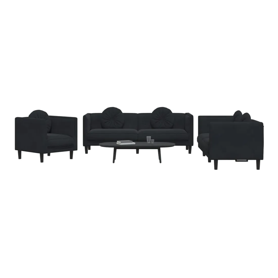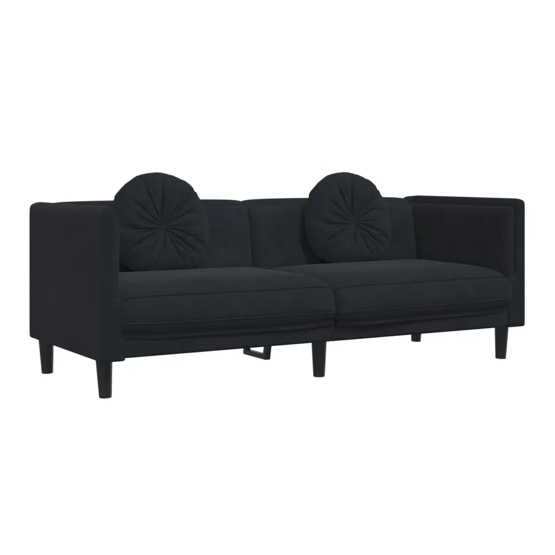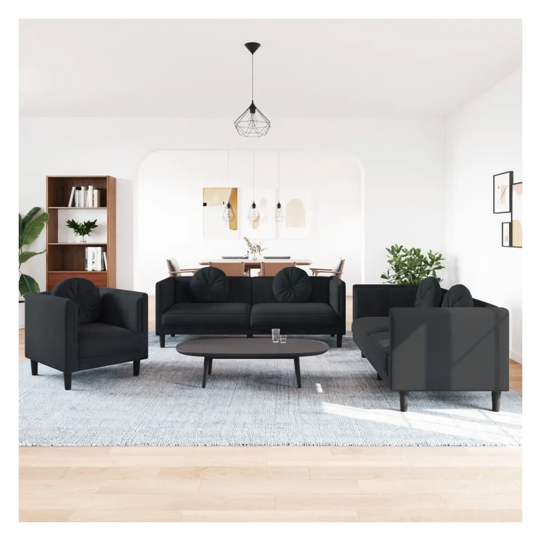 Cet ensemble de canapés est un excellent endroit pour discuter, lire, regarder la télévision ou simplement vous détendre. Il est destiné à être un point central de votre maison. Velours doux : le velours est un tissu doux et confortable, agréable au toucher.Expérience d'assise confortable : le canapé est très confortable grâce au siège et aux accoudoirs épais et rembourrés.Oreillers ronds pratiques : ces oreillers décoratifs ronds non seulement embellissent votre décor mais ils peuvent également apporter un confort supplémentaire lorsque vous êtes assis ou allongé.Pieds de soutien : le canapé rembourré est soutenu par des pieds robustes, qui assurent sa stabilité, sa sécurité et sa fermeté.Design accrocheur : doté d'un design simple mais moderne, ce siège de salon est destiné à attirer l'attention dans votre pièce.