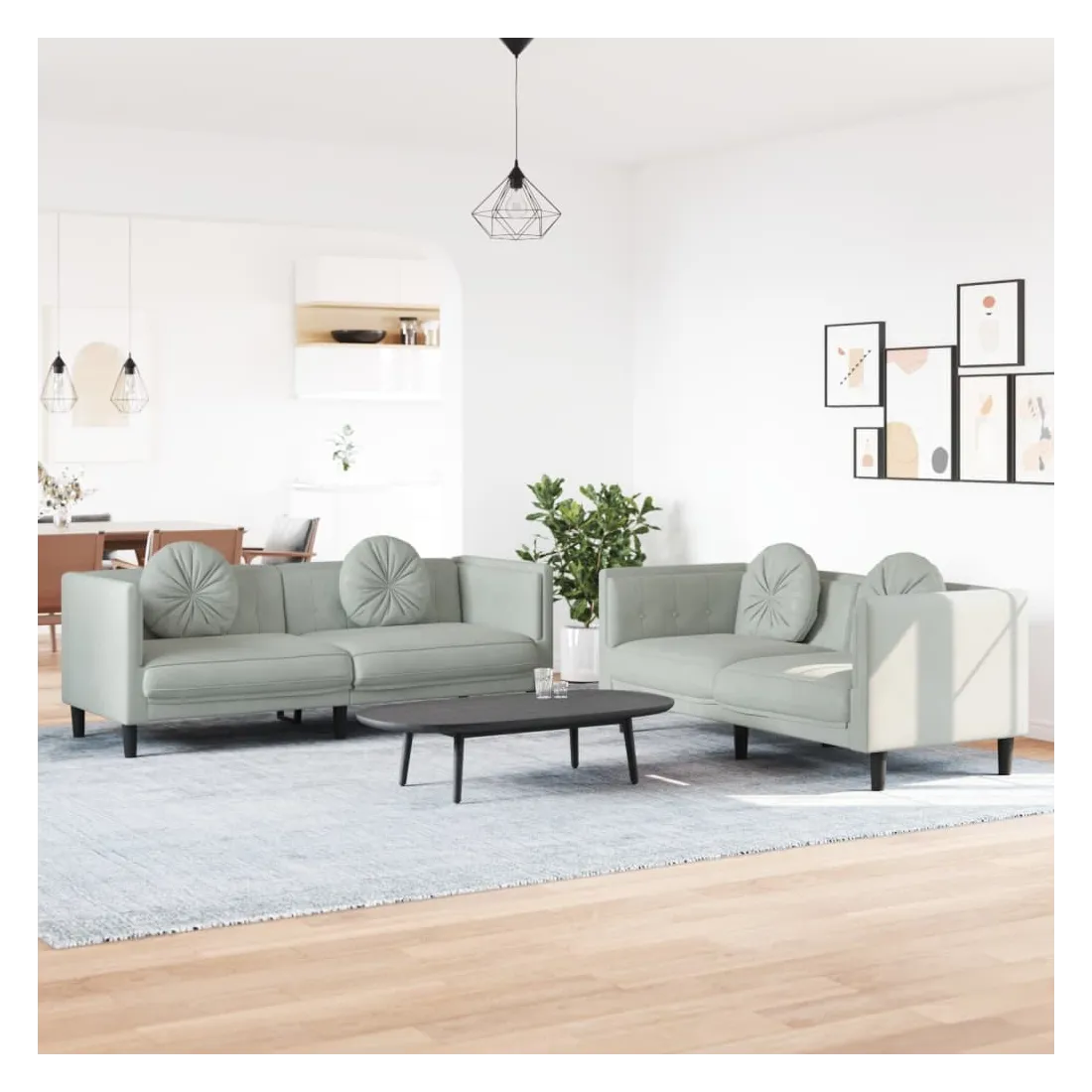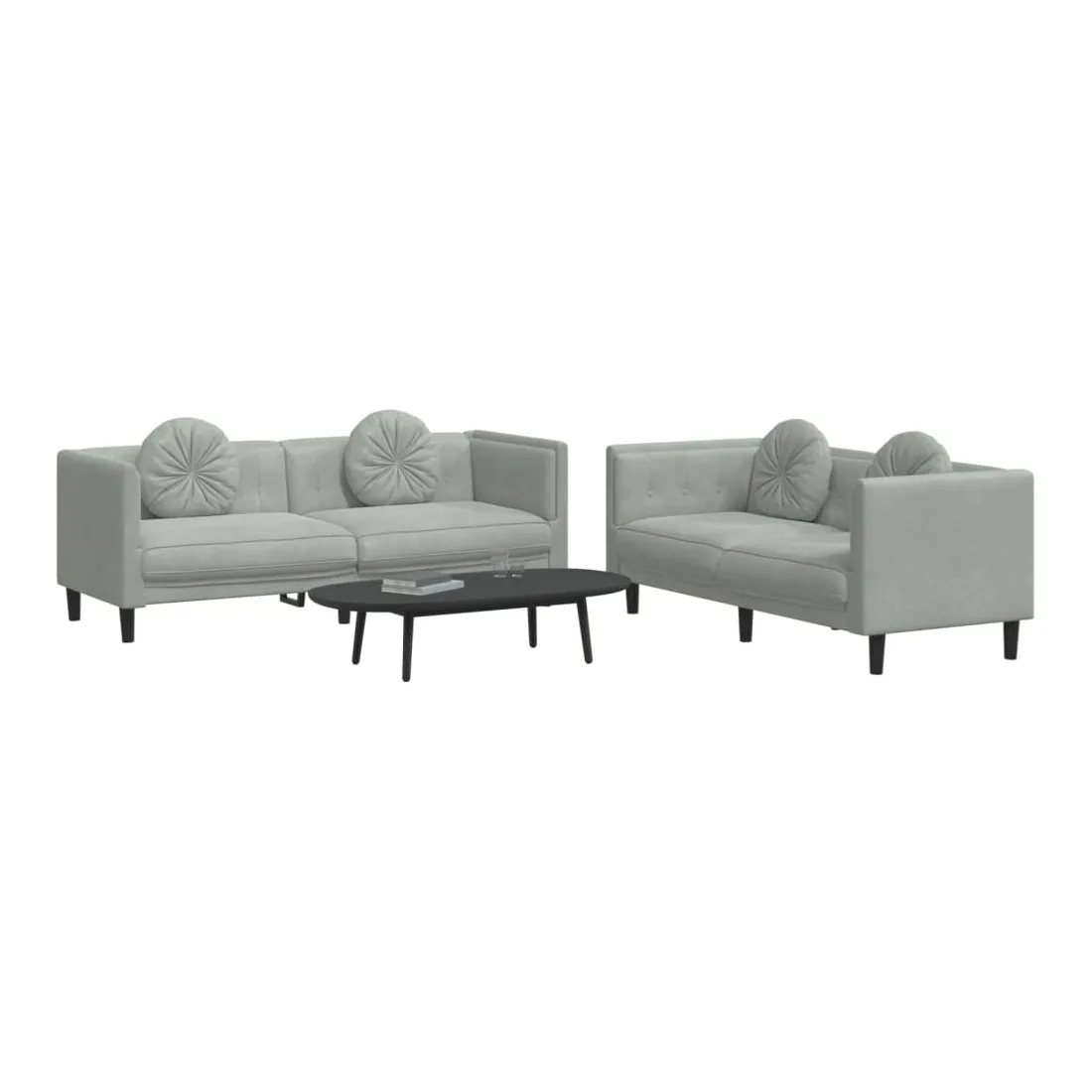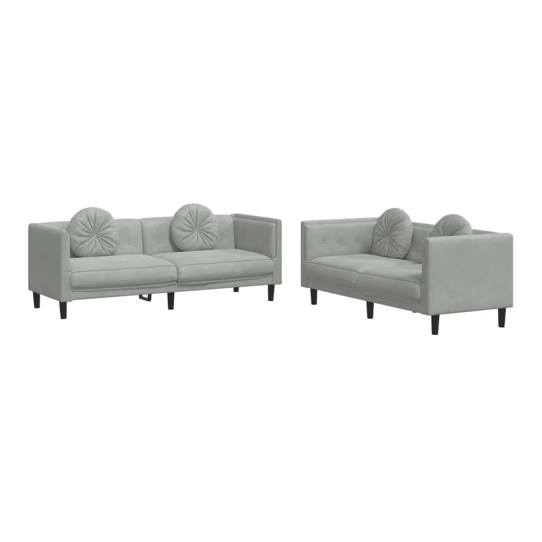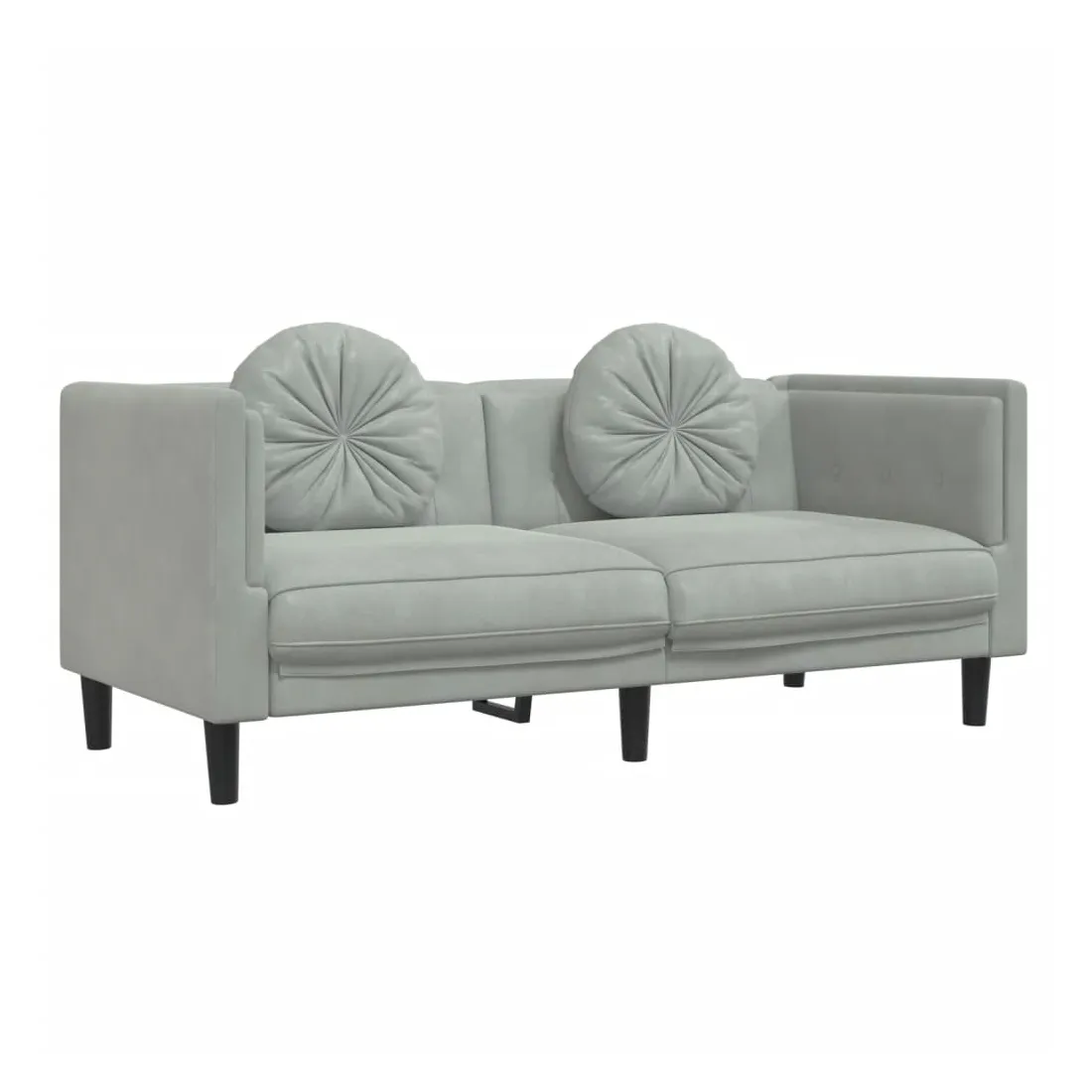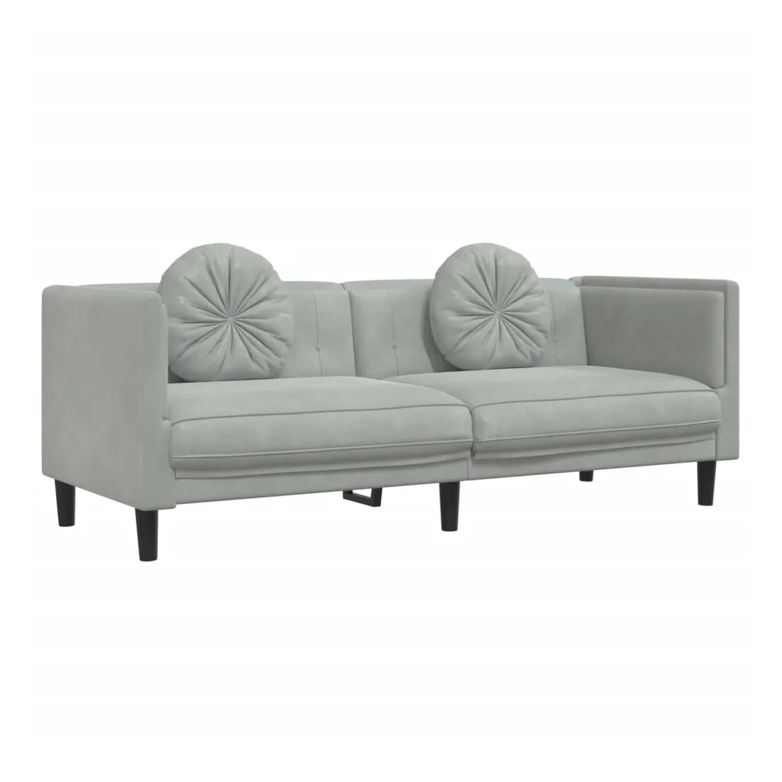 Cet ensemble de canapés est un excellent endroit pour discuter, lire, regarder la télévision ou simplement vous détendre. Il est destiné à être un point central de votre maison. Velours doux : le velours est un tissu doux et confortable, agréable au toucher.Expérience d'assise confortable : le canapé est très confortable grâce au siège et aux accoudoirs épais et rembourrés.Oreillers ronds pratiques : ces oreillers décoratifs ronds non seulement embellissent votre décor mais ils peuvent également apporter un confort supplémentaire lorsque vous êtes assis ou allongé.Pieds de soutien : le canapé rembourré est soutenu par des pieds robustes, qui assurent sa stabilité, sa sécurité et sa fermeté.Design accrocheur : doté d'un design simple mais moderne, ce siège de salon est destiné à attirer l'attention dans votre pièce.
