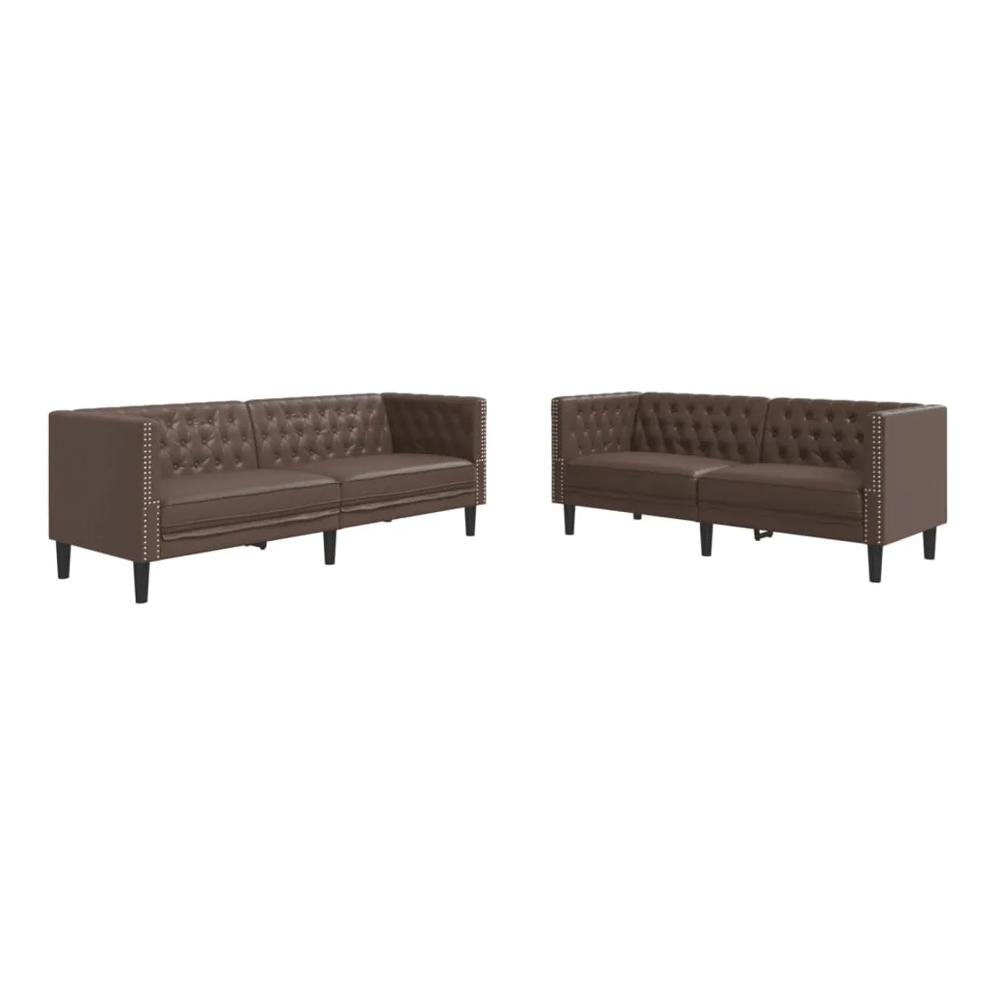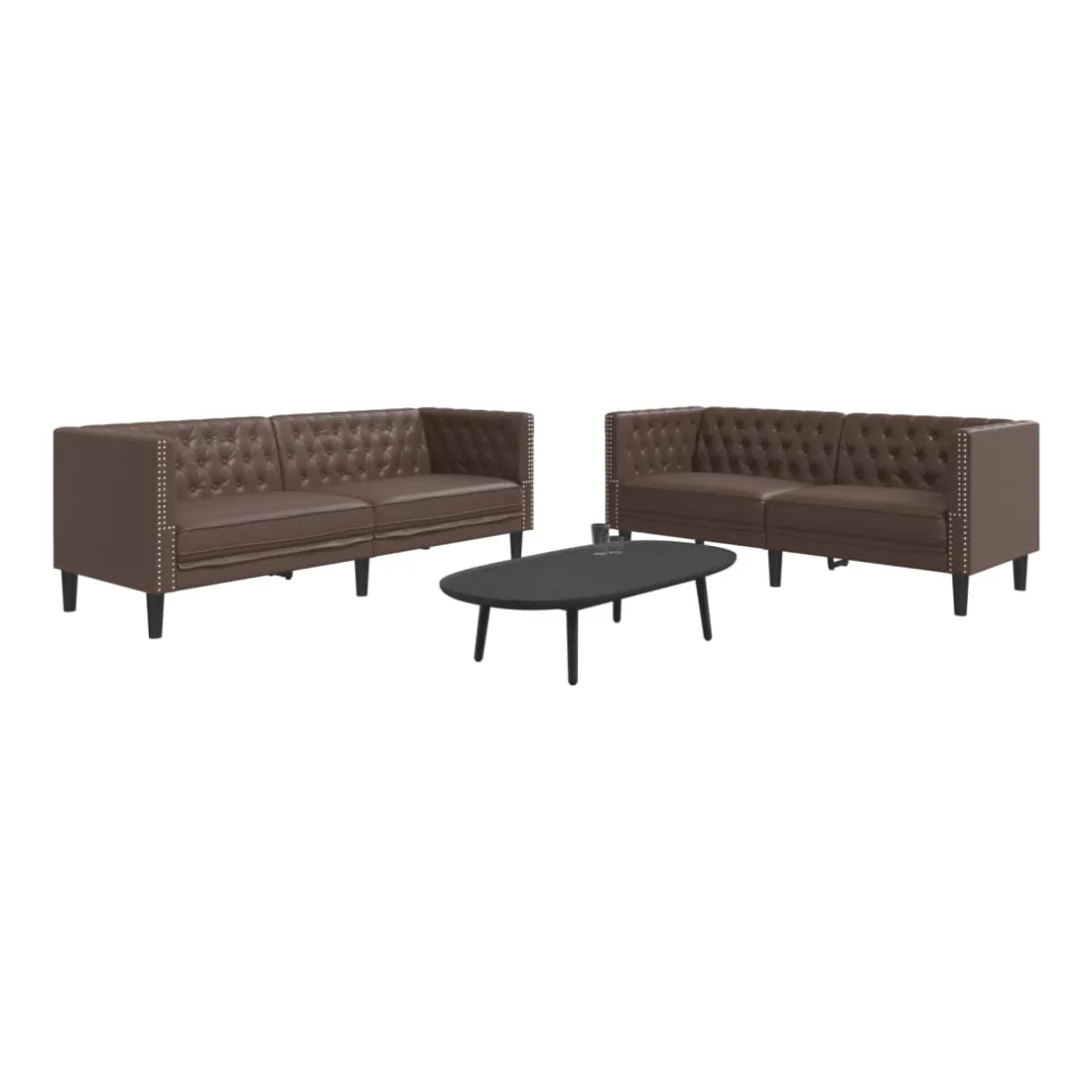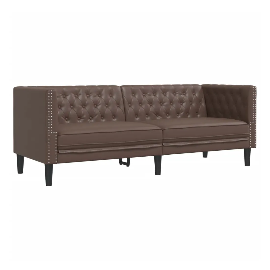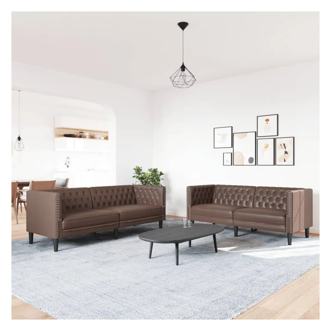 Cet ensemble de canapé Chesterfield est un excellent endroit pour discuter, lire, regarder la télévision ou simplement se détendre. Il est destiné à être un point central dans votre maison. Longue durée de vie et entretien facile : le similicuir est un matériau très durable qui résiste aux taches, ce qui le rend facile à nettoyer avec un chiffon humide. Sa surface lisse lui confère un aspect élégant qui ressemble à celui du cuir véritable.Expérience d'assise confortable : le canapé est très confortable avec les sièges, les accoudoirs et les oreillers de dossier bien rembourrés.Style Chesterfield : avec le dossier et les accoudoirs classiques à boutons tuftés, et une hauteur de dossier et d'accoudoir uniforme, le canapé rehaussera n'importe quelle pièce, offrant à la fois style et confort.Pieds de soutien : le canapé rembourré est soutenu par des pieds robustes, qui assurent sa stabilité, sa sécurité et sa fermeté.